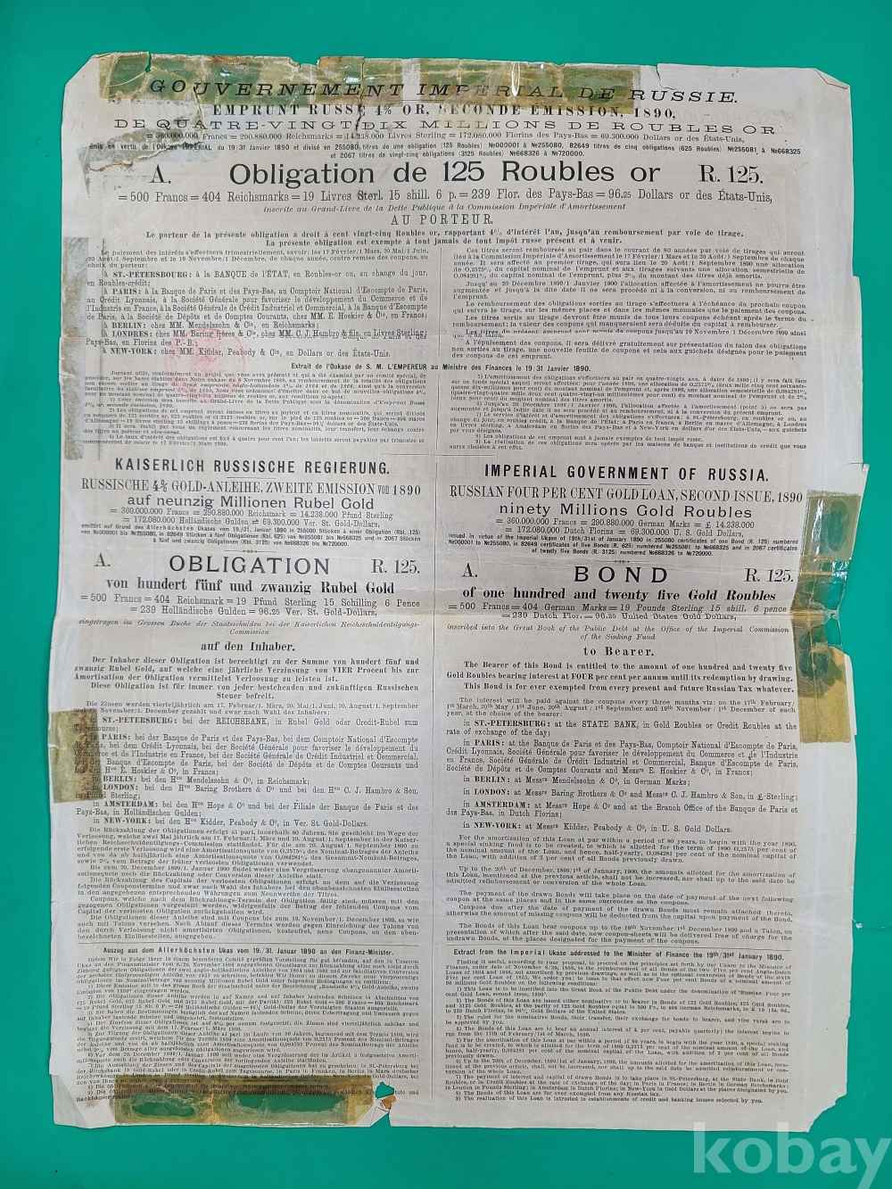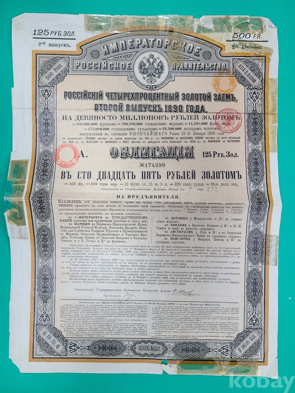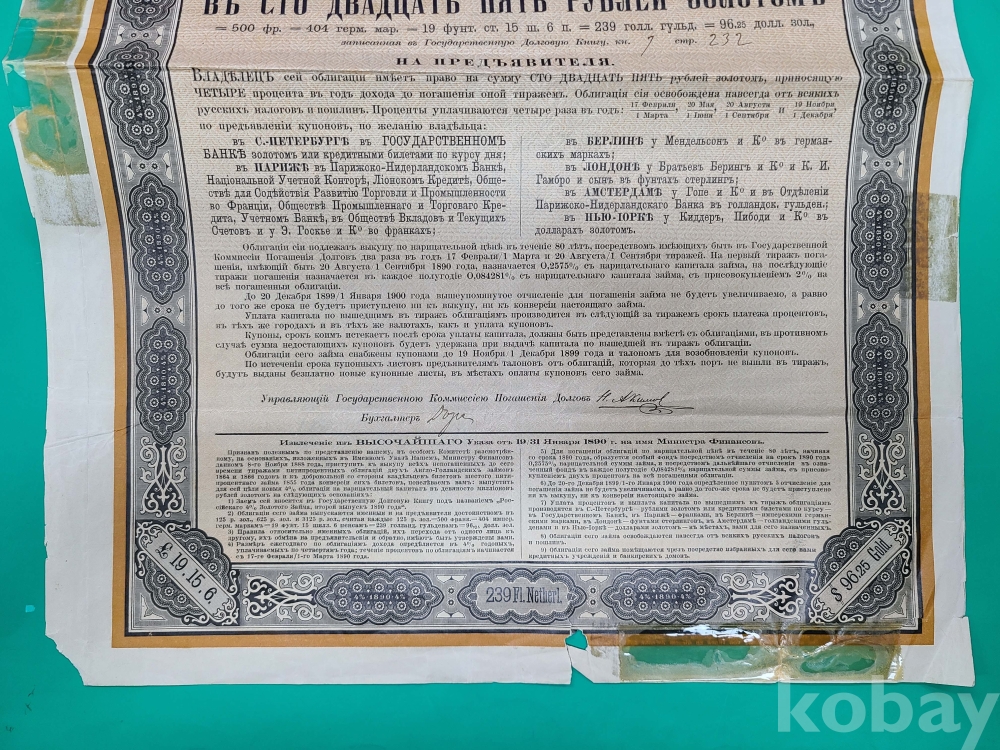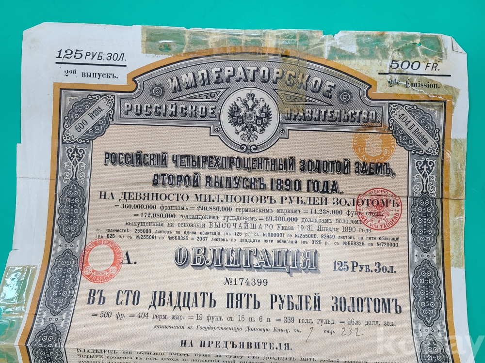 1890년 러시아 대형채권/*낡아서 테이프로 붙인부분 있음