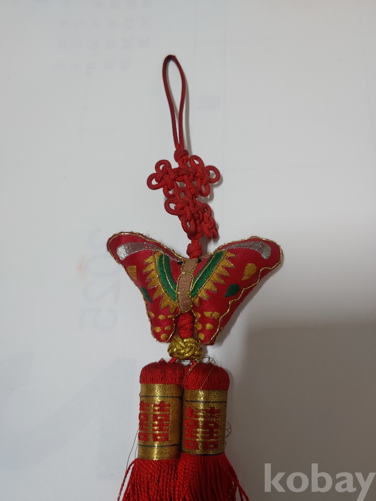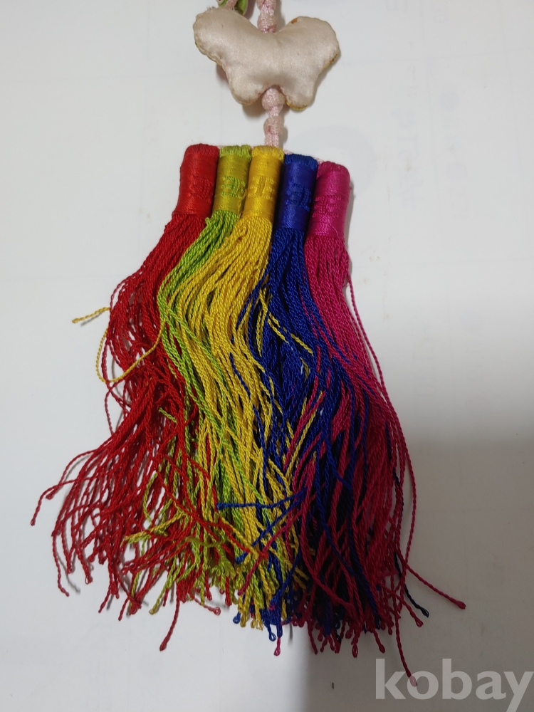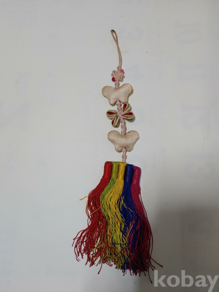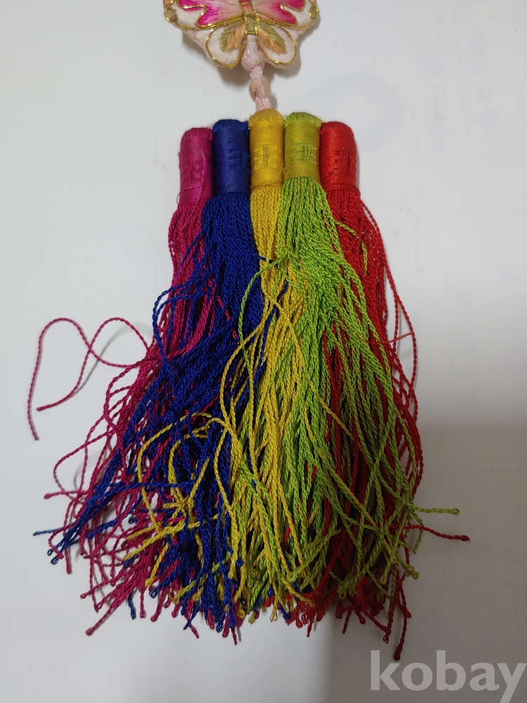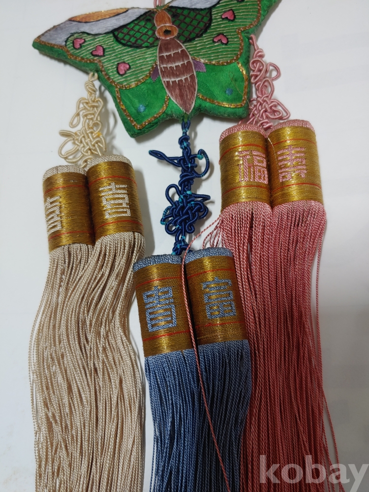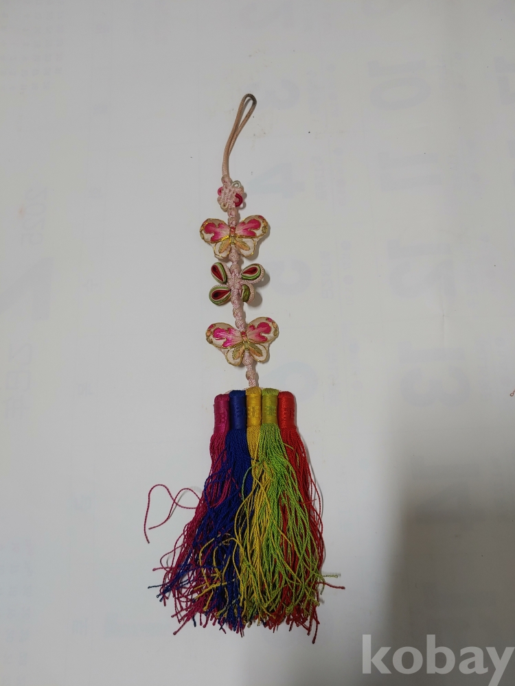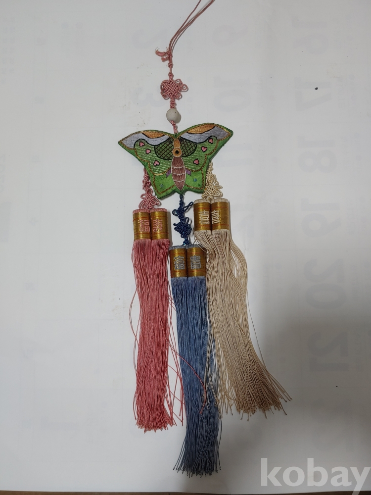 예쁜 모양과 크기가 각각 다른 노리게 매듭 장식품이며