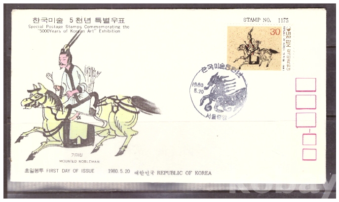 (초일봉피) 1980.5.20 한국미술 5천년 특별우표*기마상 FDC (서울중앙)