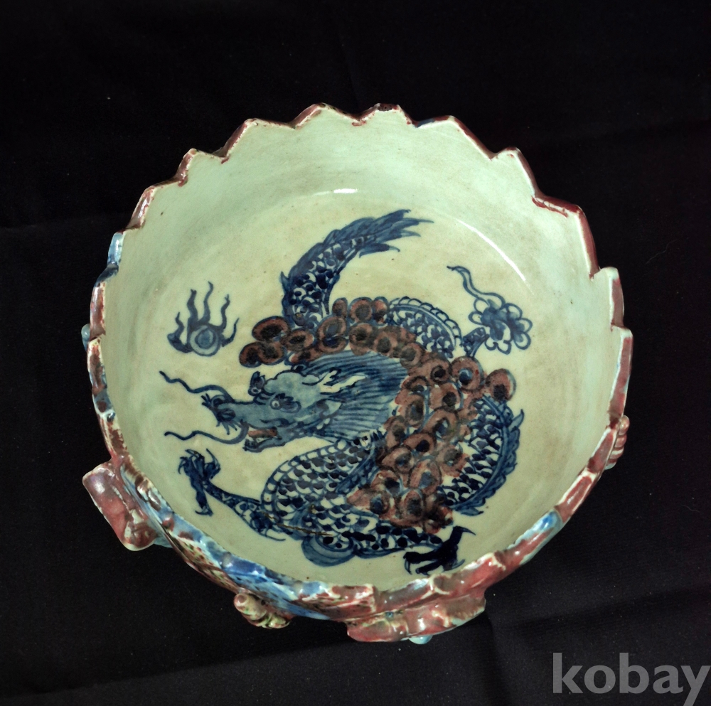 놓았고, 안쪽에는 4조룡을 청화와 동채로 힘차게 그려