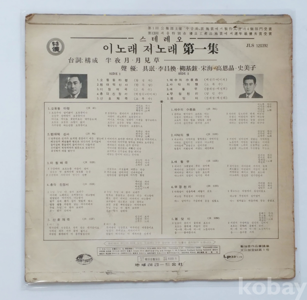 음반 상태 : EX, 스크래치는 거의 없으며, 잡음 거의 없고 청음 상태 좋으나