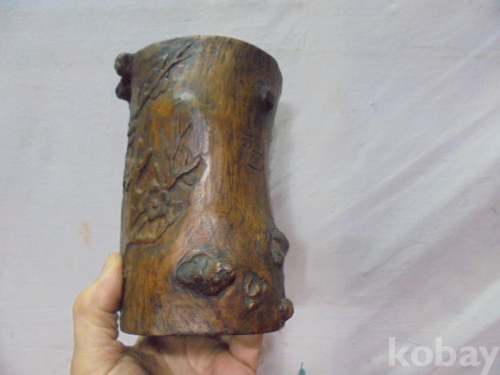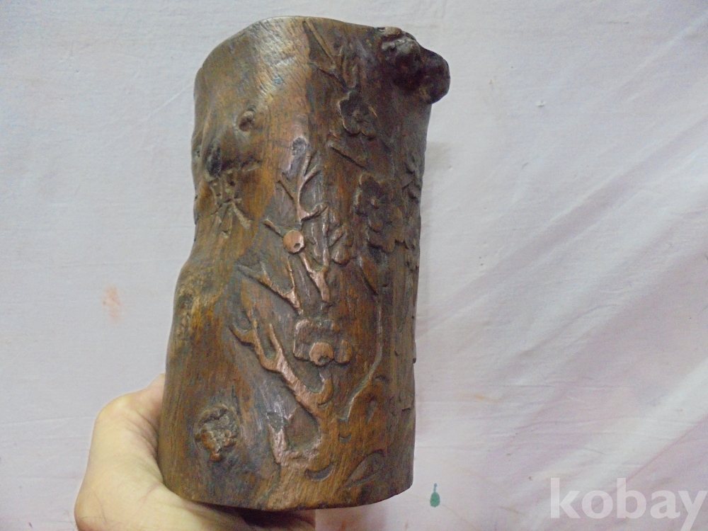 몸체에 매화조각이 만개한 필통은 절말 귀합니다