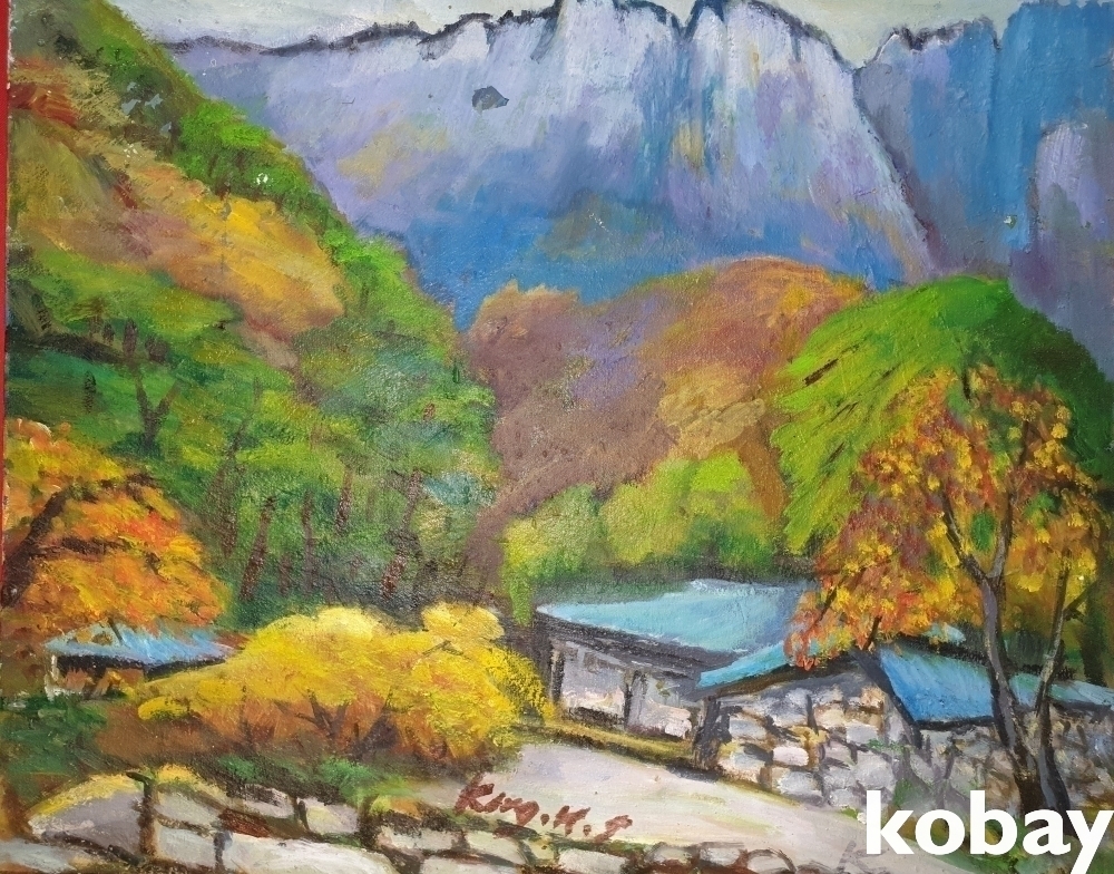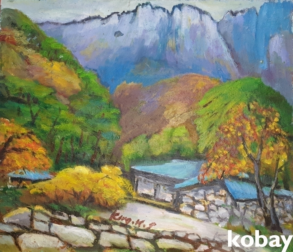 서양화가 KIM 作 켄버스 유화 추격 산수화10호 입니다,
