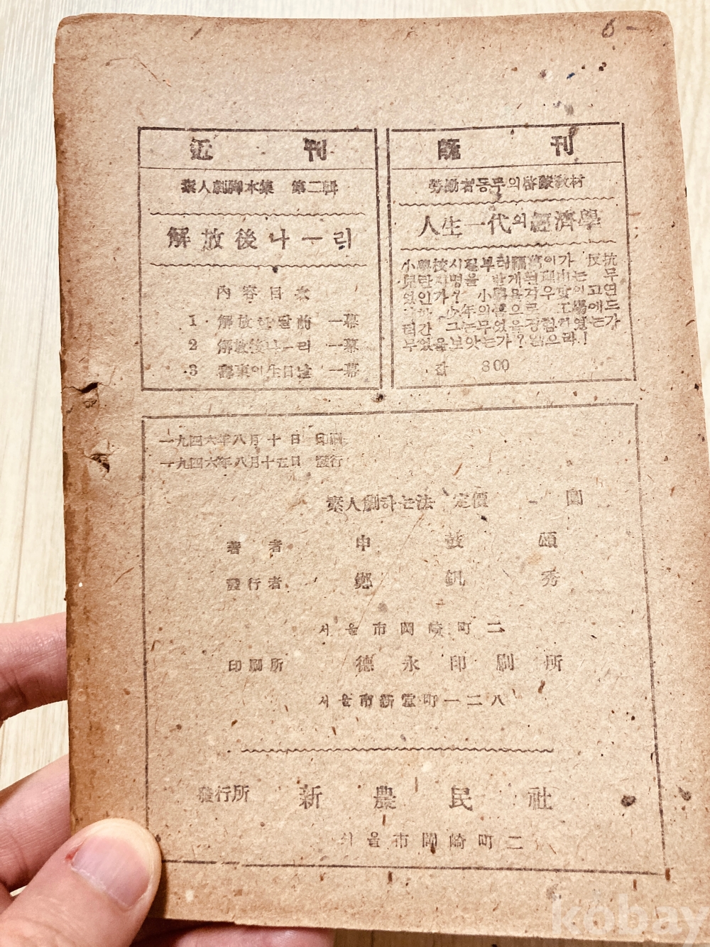언타깝게도 앞표지가 없습니다. 판권지를 겸한 뒷표지는 살아 있습니다.