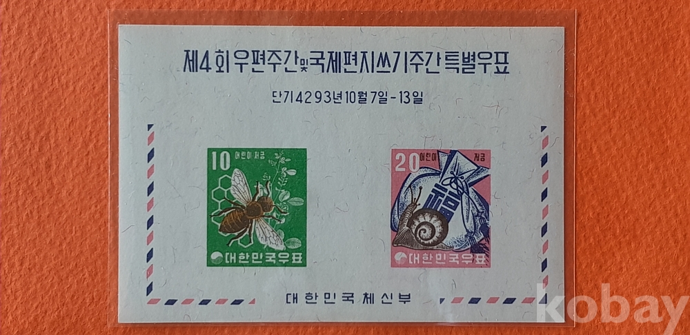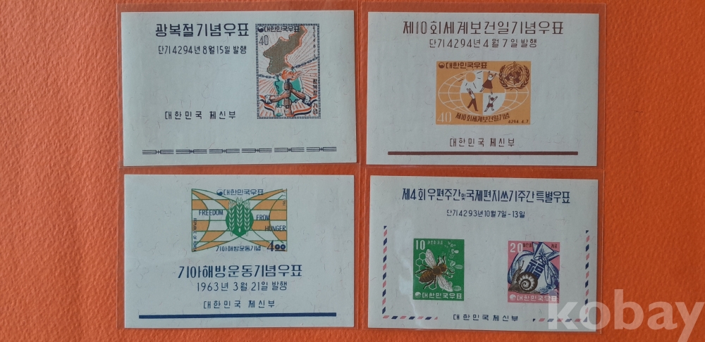 광복절 기념, 제10회 세계보건일, 기아해방운동, 제4회 우편주간 소형시트 등 총 4종 입니다.