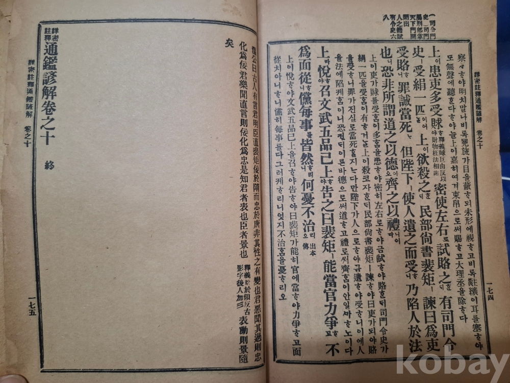 1919년(4판). 상밀주석 통감언해 권10.선장본.지송욱.신구서림,유일서관,회동서관,박문서관.176쪽