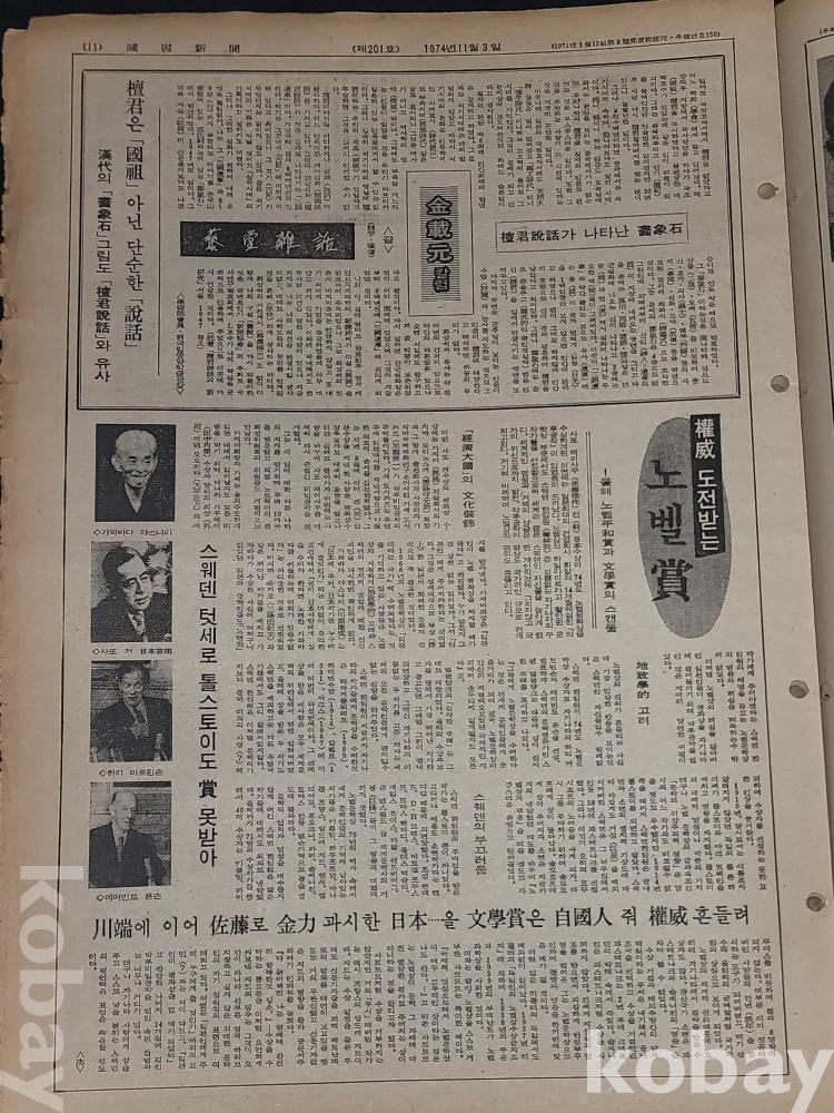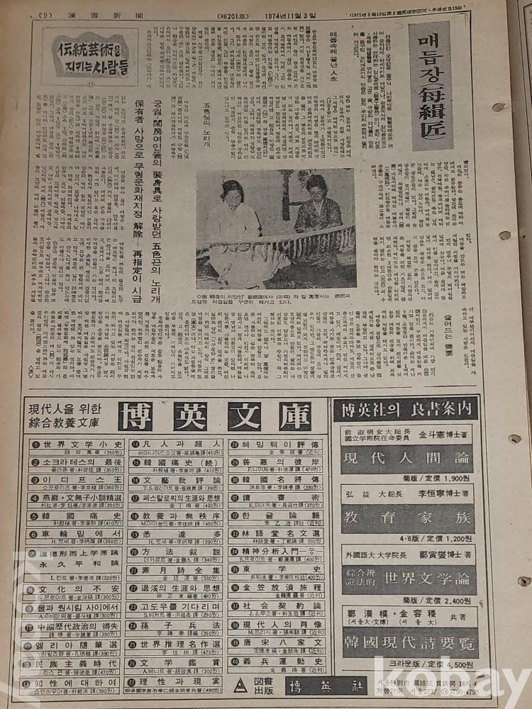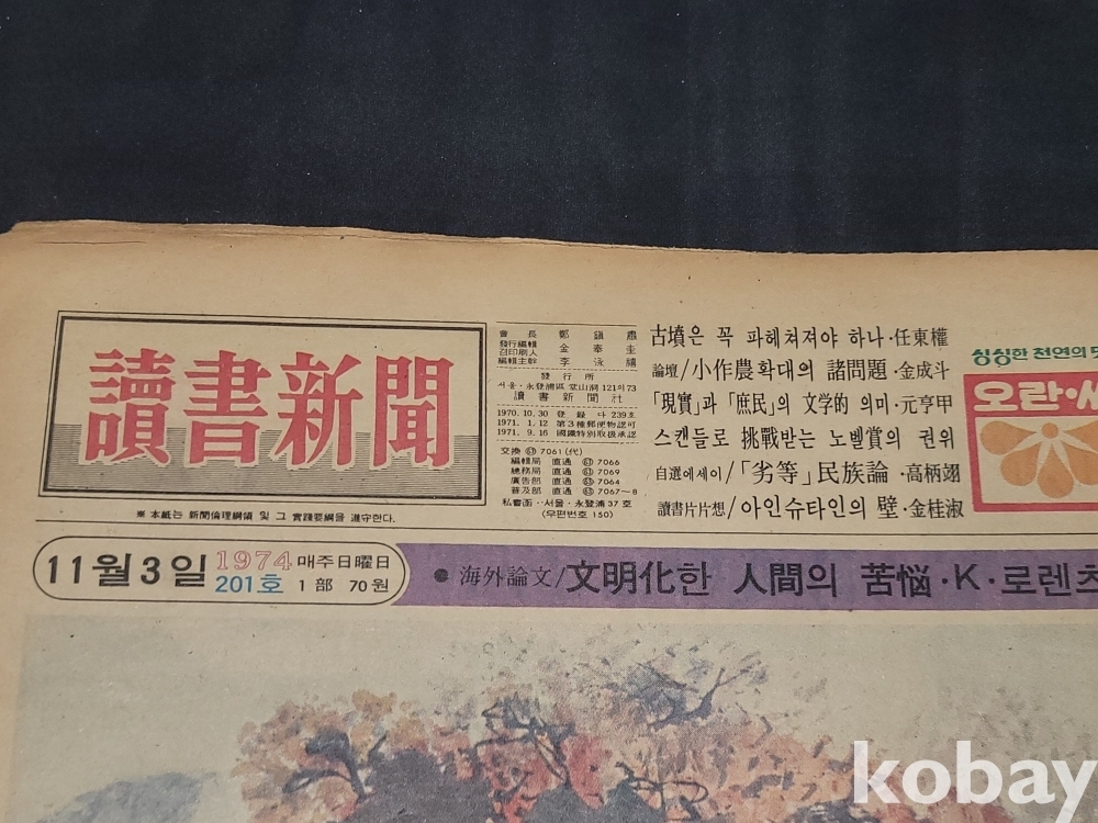 빈티지 세월 감이 느껴지는 희귀한 독서신문(讀書新聞) 1974년 11월 3일 제201호 신문자료입니다.