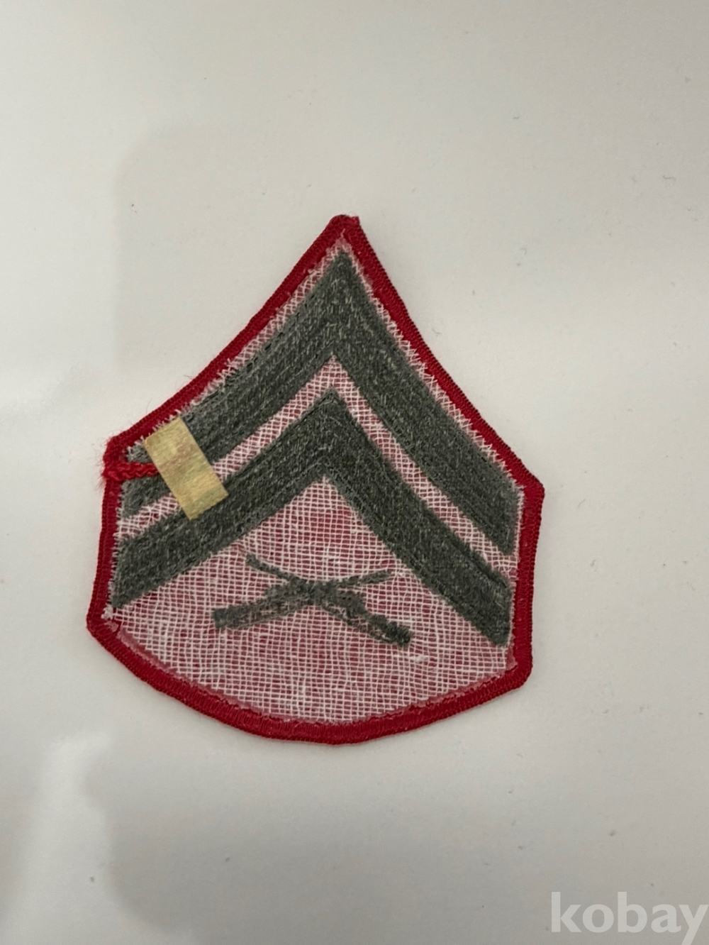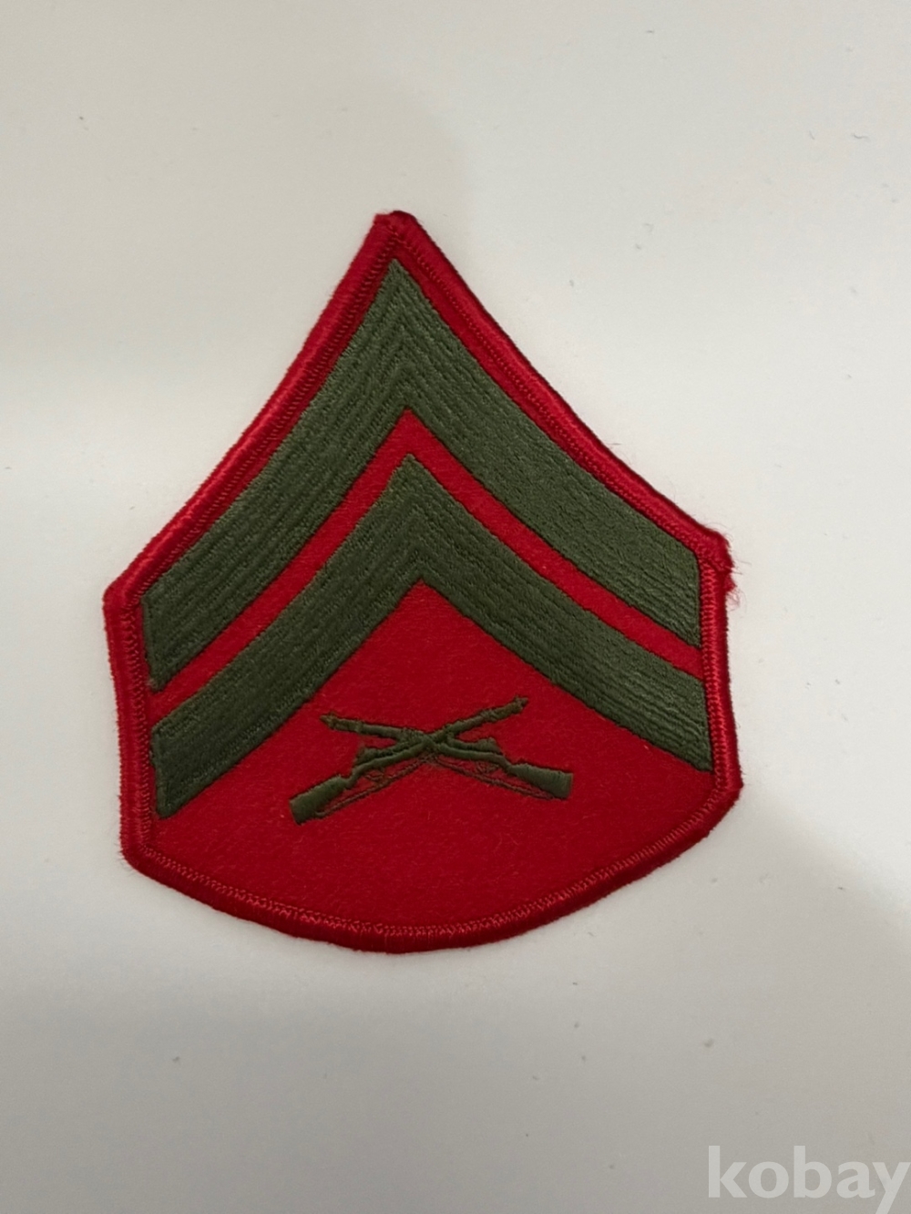 1. 미국 해병대(USMC) 하사 계급장인 랜스 코퍼럴(Lance Corporal, E-3) 골드 셰브론 패치입니다.