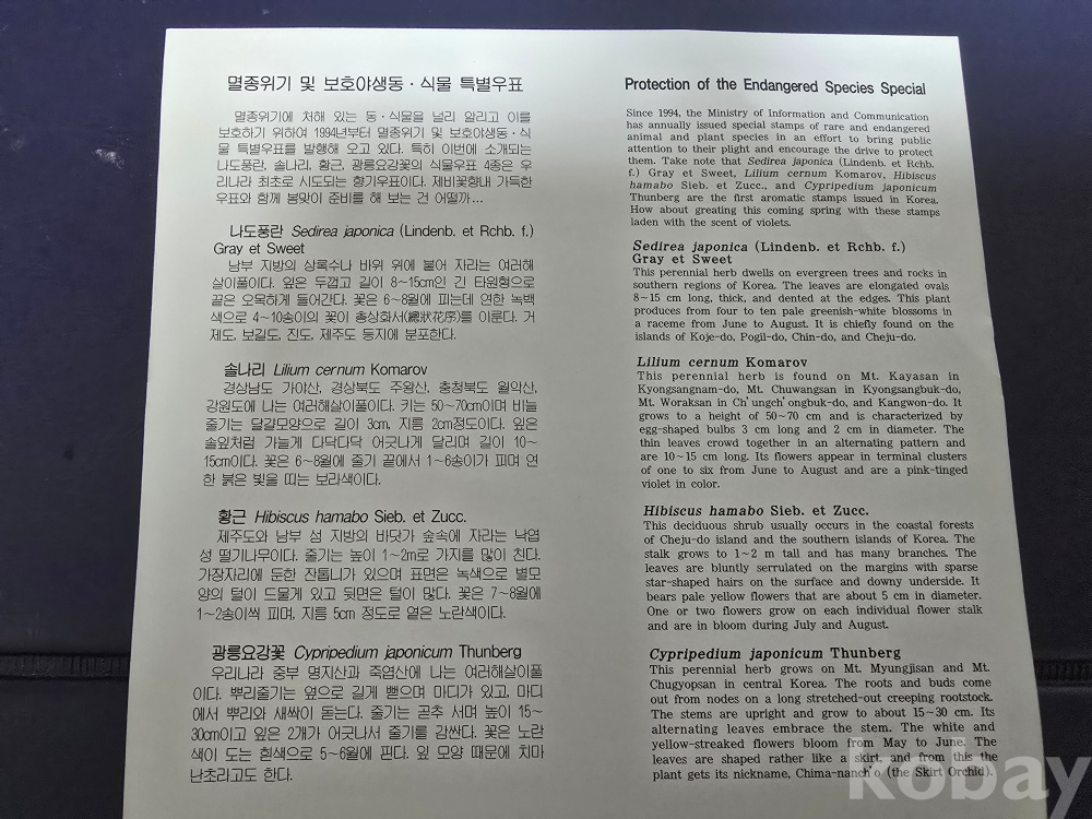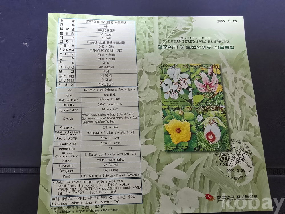 우표안내카드/00'2,25멸종위기및 보호야생,동식물특별