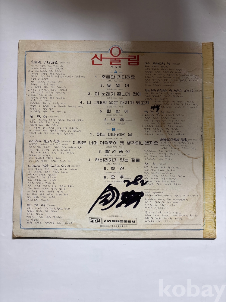 | 자켓상태 | G : 눈에 띄는 손상, 테이프, 필기 존재 | 음반상태 | VG : 생활 기스 다수, 가벼운 노이즈 존재 | 발매정보 | 초반 | 가사지여부 | 무 |