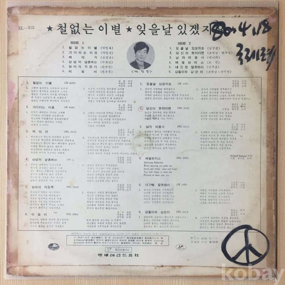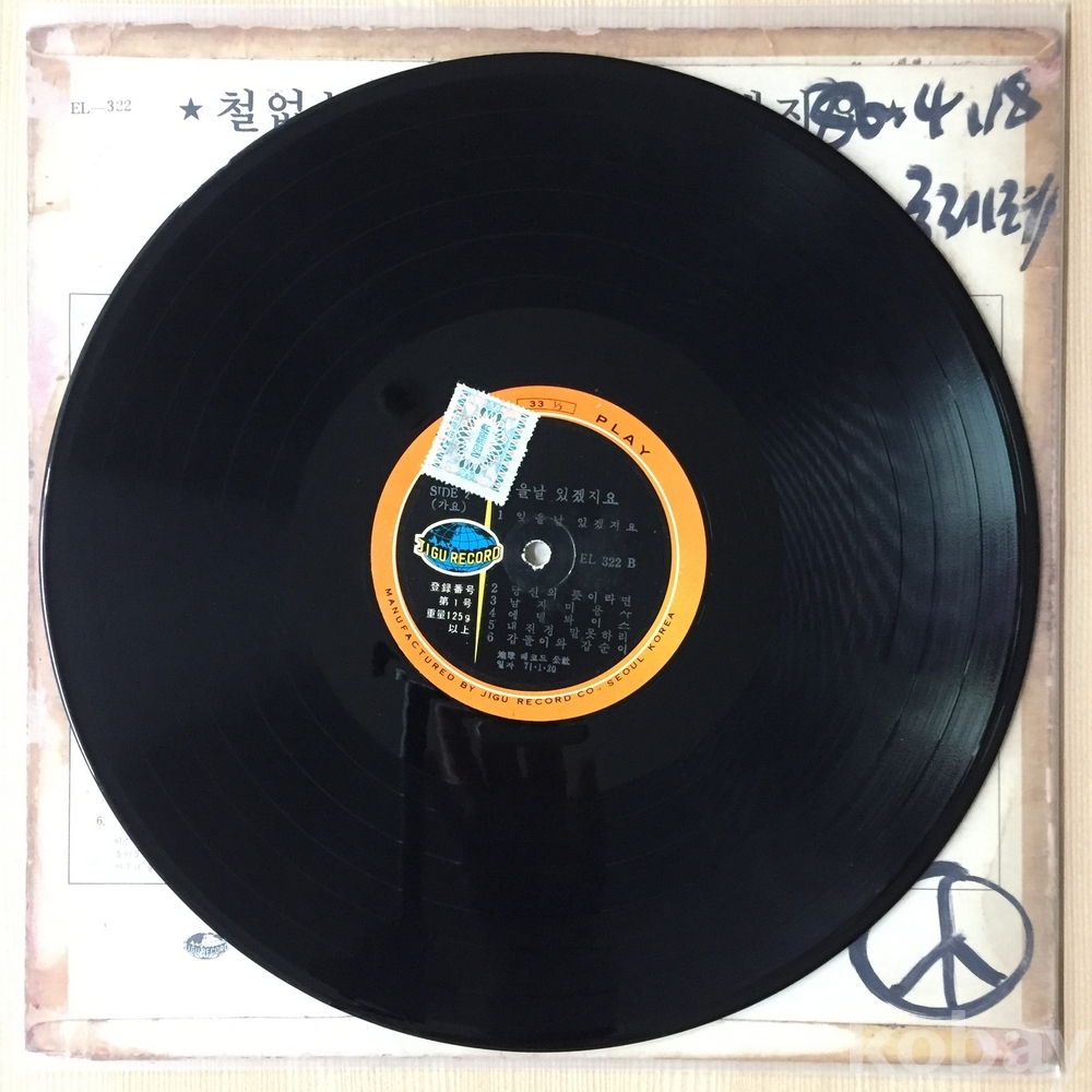. 가요음반 대부분은 휘어짐이나 손상을 방지하기 위해 무지싱글자킷을 하나 더 사용하여 보관되었던 음반들입니다.