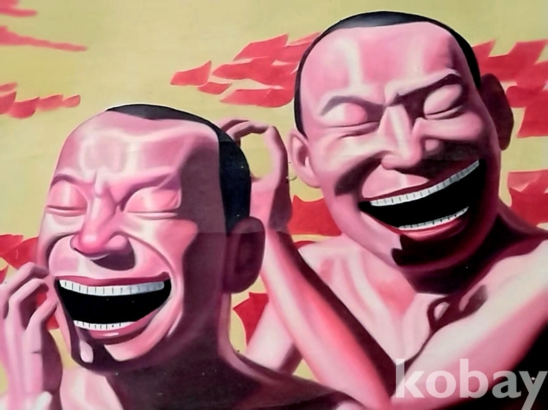 岳敏君 ,敏君과 영문이름 yueminjun을 사용하고 있으며, 본 작품에서 보시다시피