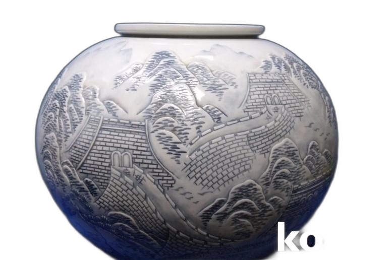 설경속에 산성 표현 도자기 입니다.