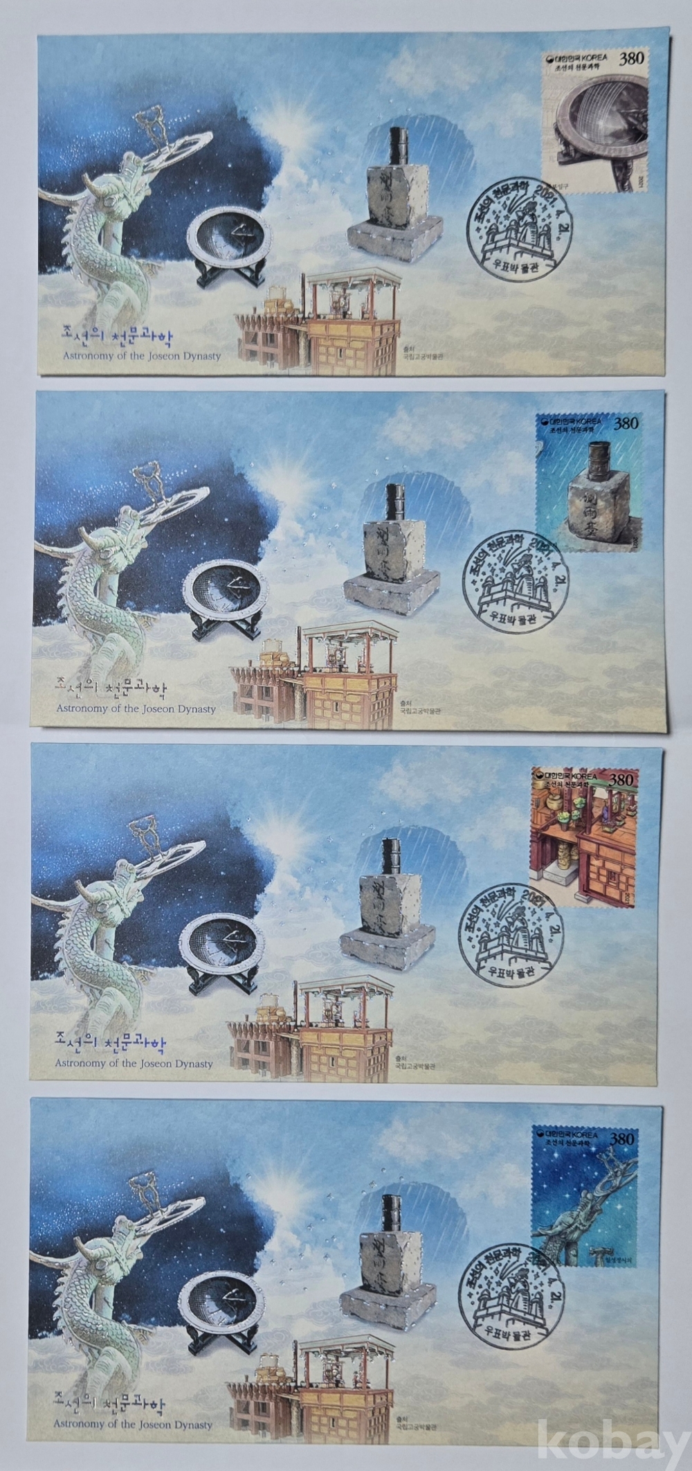 2021년 조선의 천문과학 박물관 초일봉투 4종입니다.