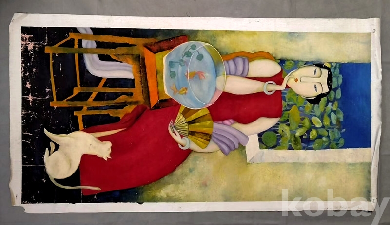 중국 현대 신미인도 개척자 호영개(胡永凯) 1990년대 대형캔버스유화 길상미인도(仕女图)