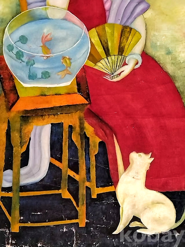 연년유여(連年有餘) 의미의 물고기 어항과, 고대기물 그리고 부채 등을