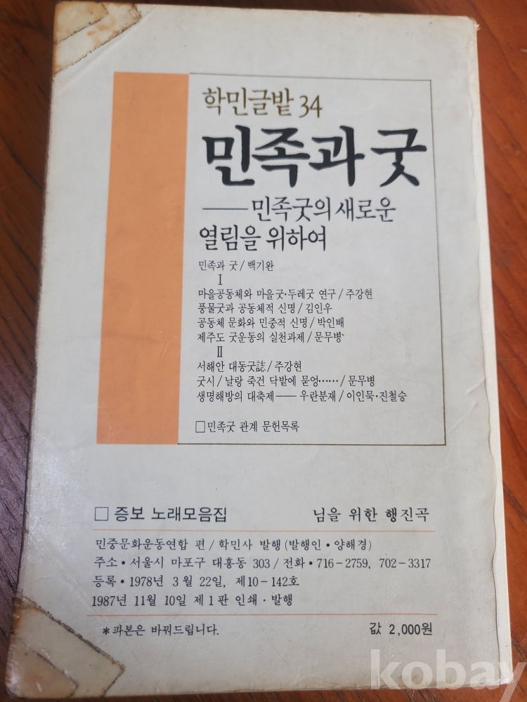 1. 님을 위한 행진곡, 민중문화운동연합편, 학민사, 1987년, 312쪽, 상태 상, 사진 참조