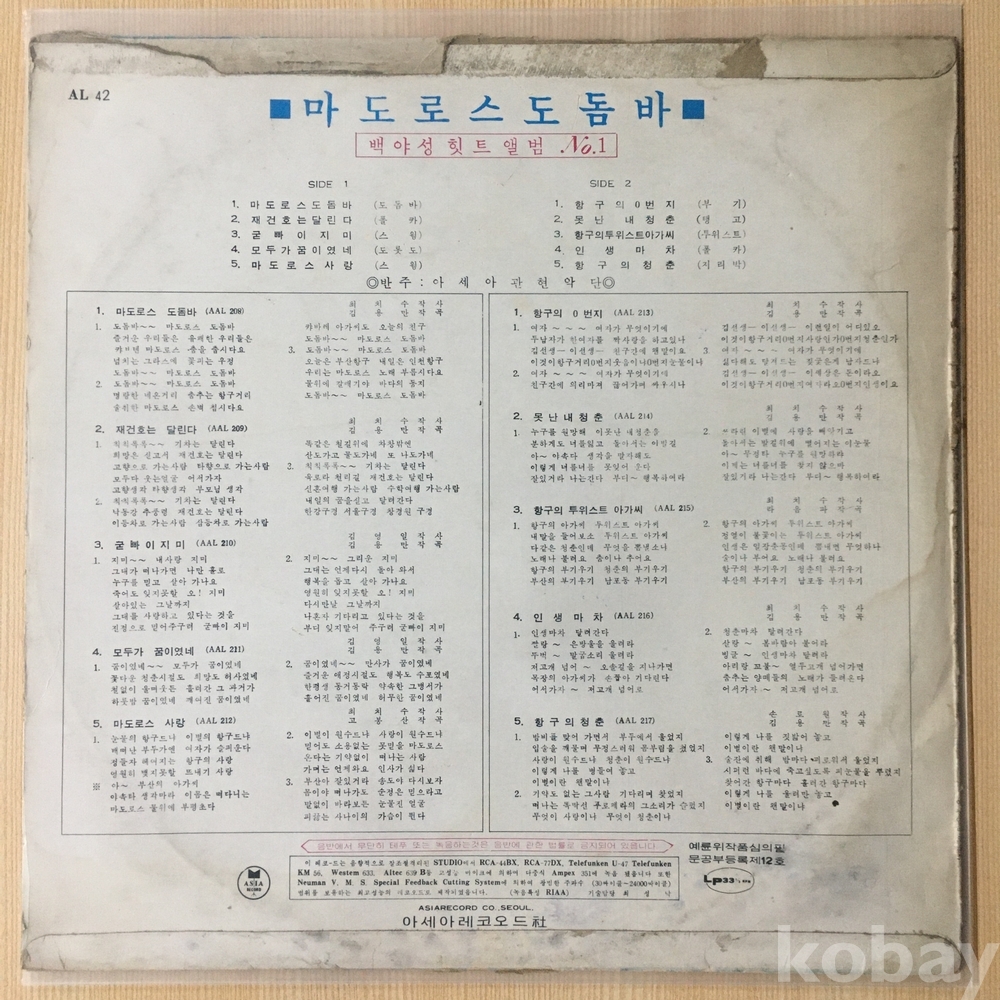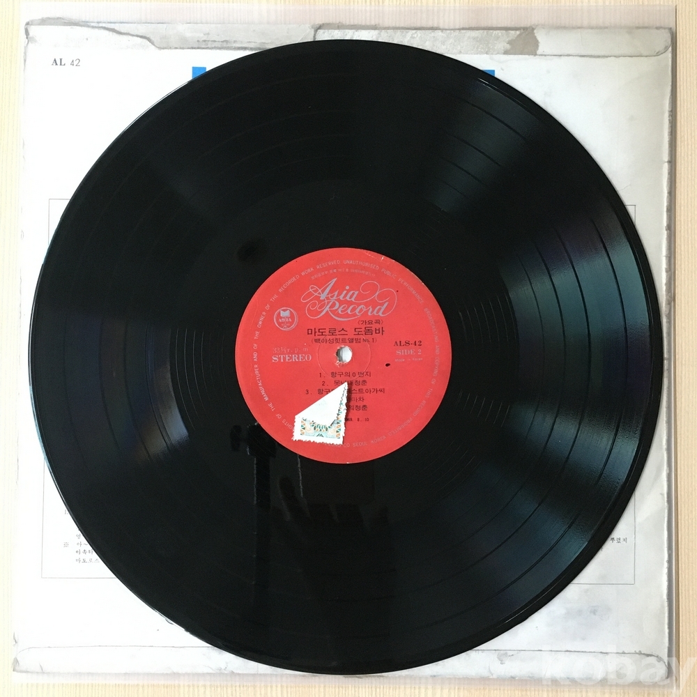 . 가요음반 대부분은 휘어짐이나 손상을 방지하기 위해 무지싱글자킷을 하나 더 사용하여 보관되었던 음반들입니다.