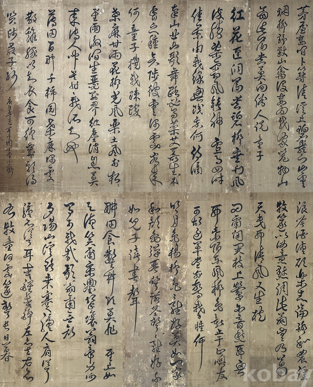 상태: 전체적으로 양호하나 세월에 따른 변색이나 찢어지고 벗겨진 부분이 있음.