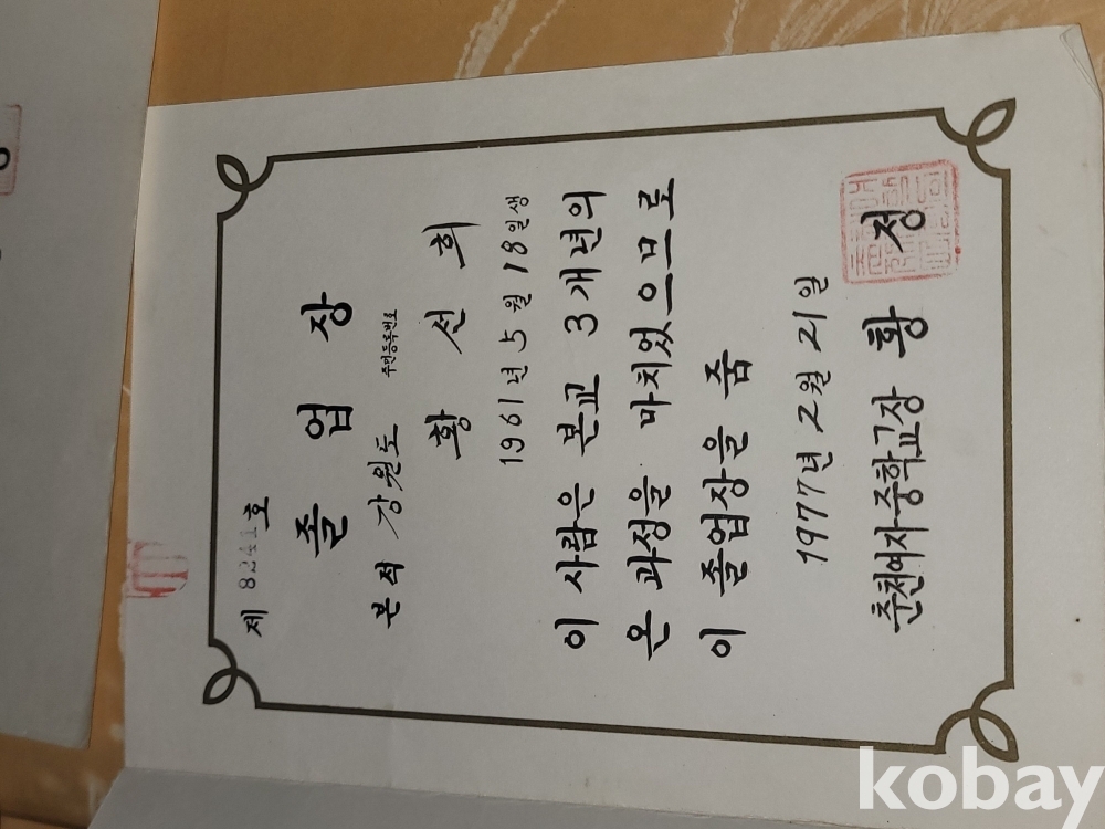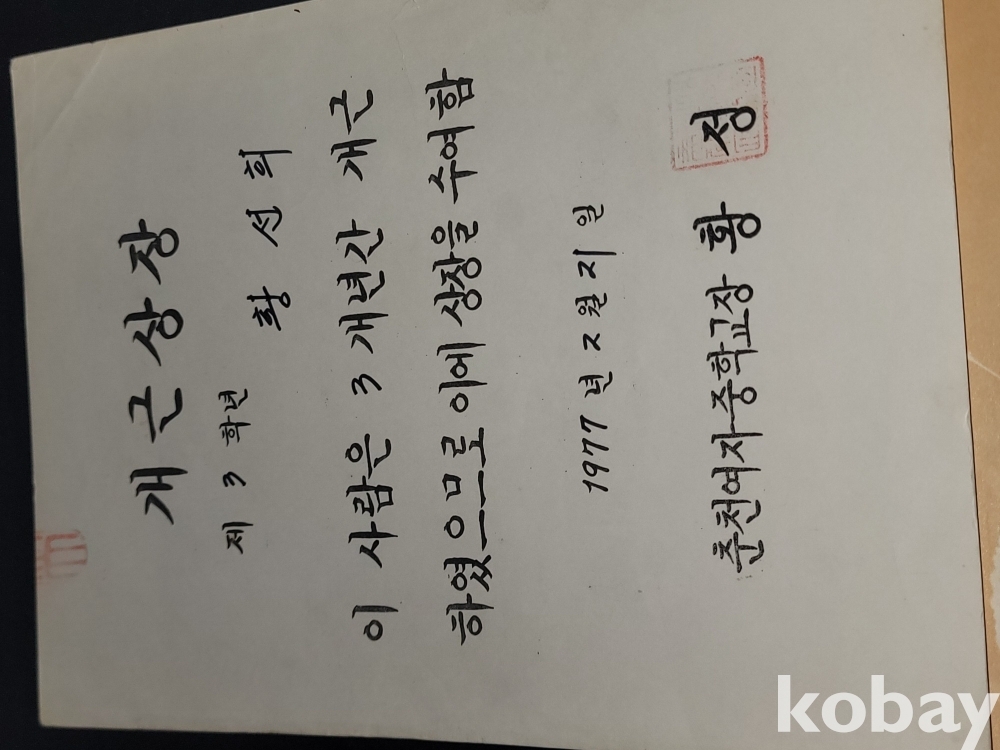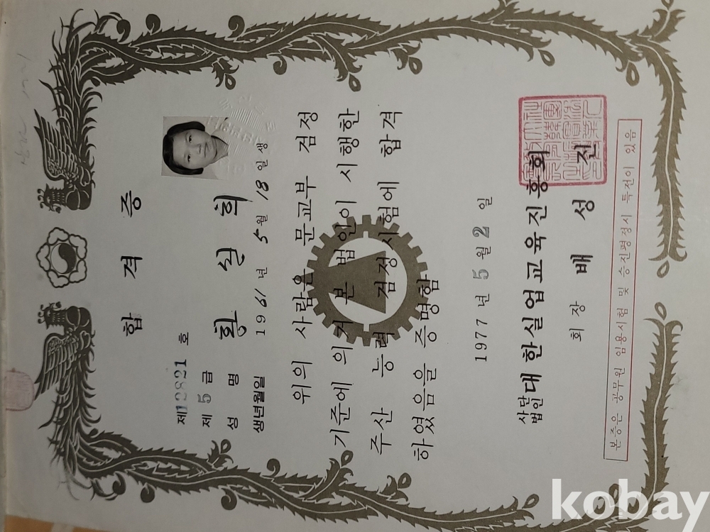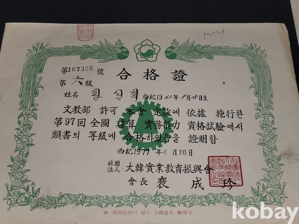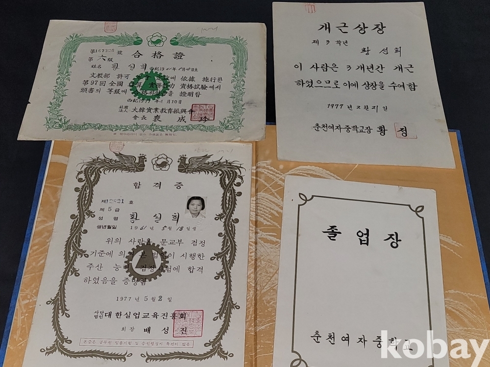 1977년 각종 희귀한 주산, 산술 기능 합격증 자격증과 개근상장 졸업장 등 4종 포함입니다.