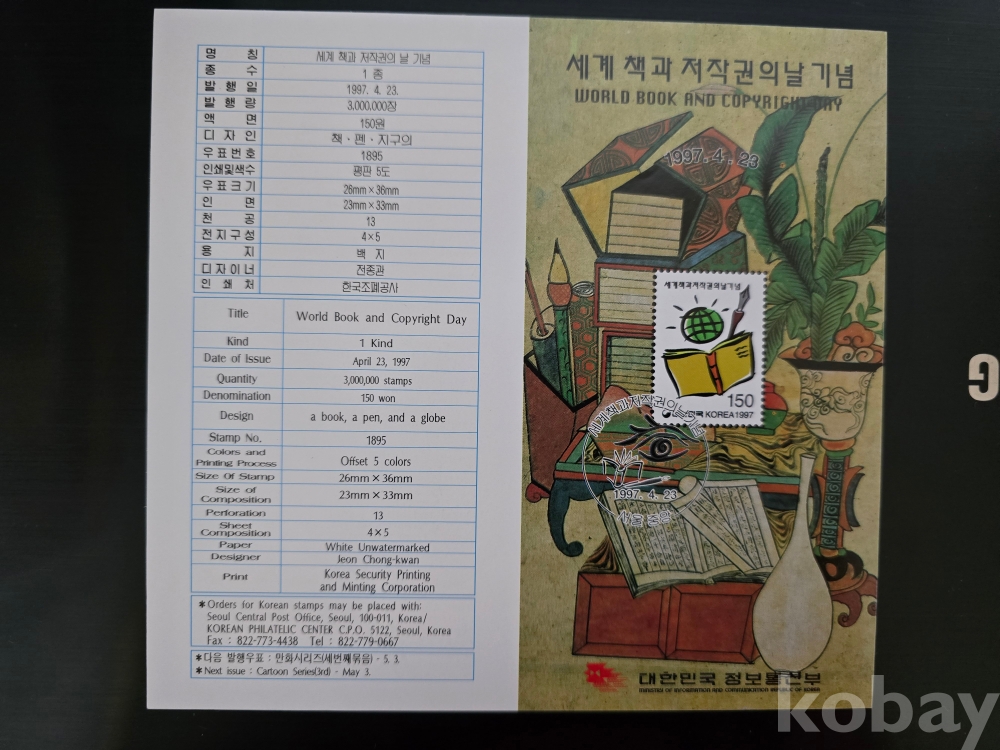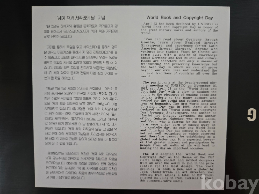 우표안내카드/ 97'4.23 세계책과 저작권의날 기념우표