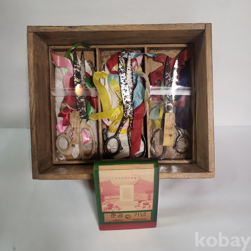 [희귀 근대사 자료] / 백마포병훈련장 준공기념 문진패 및 준공식 테이프 커팅 가위박스 등 일괄