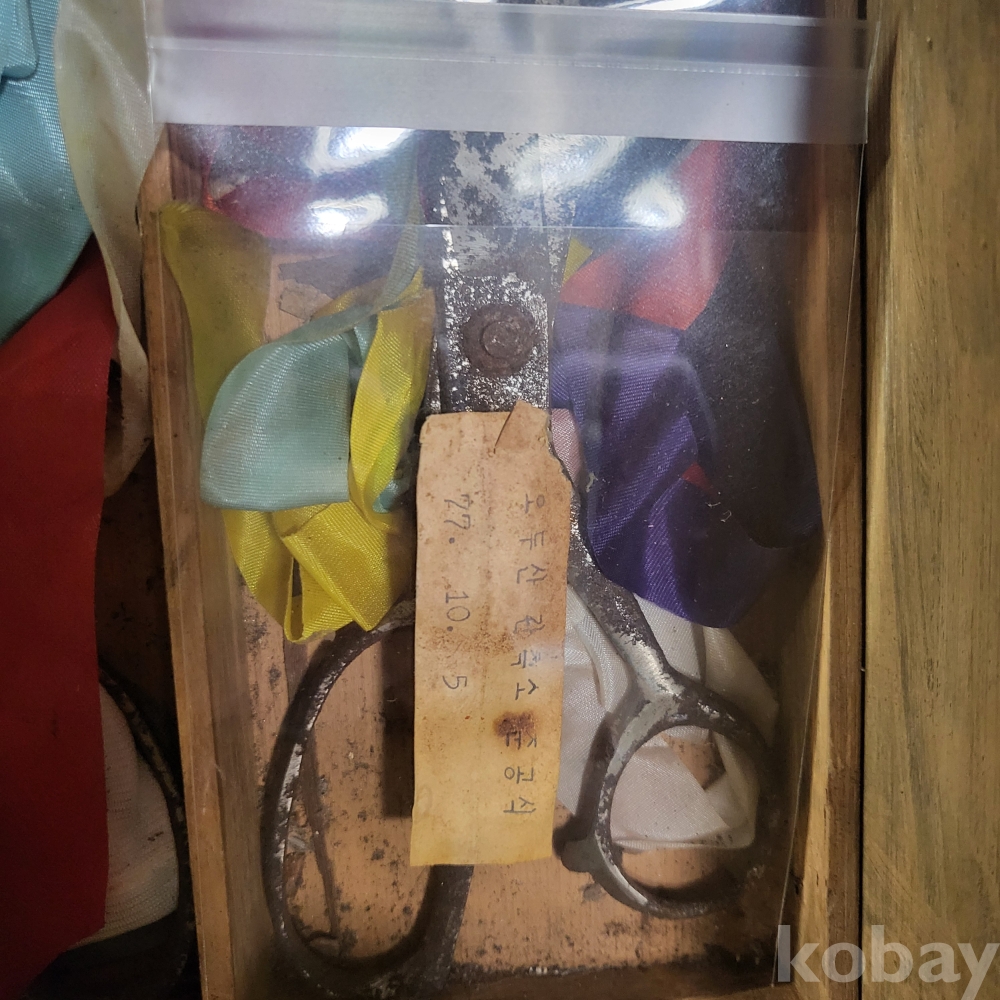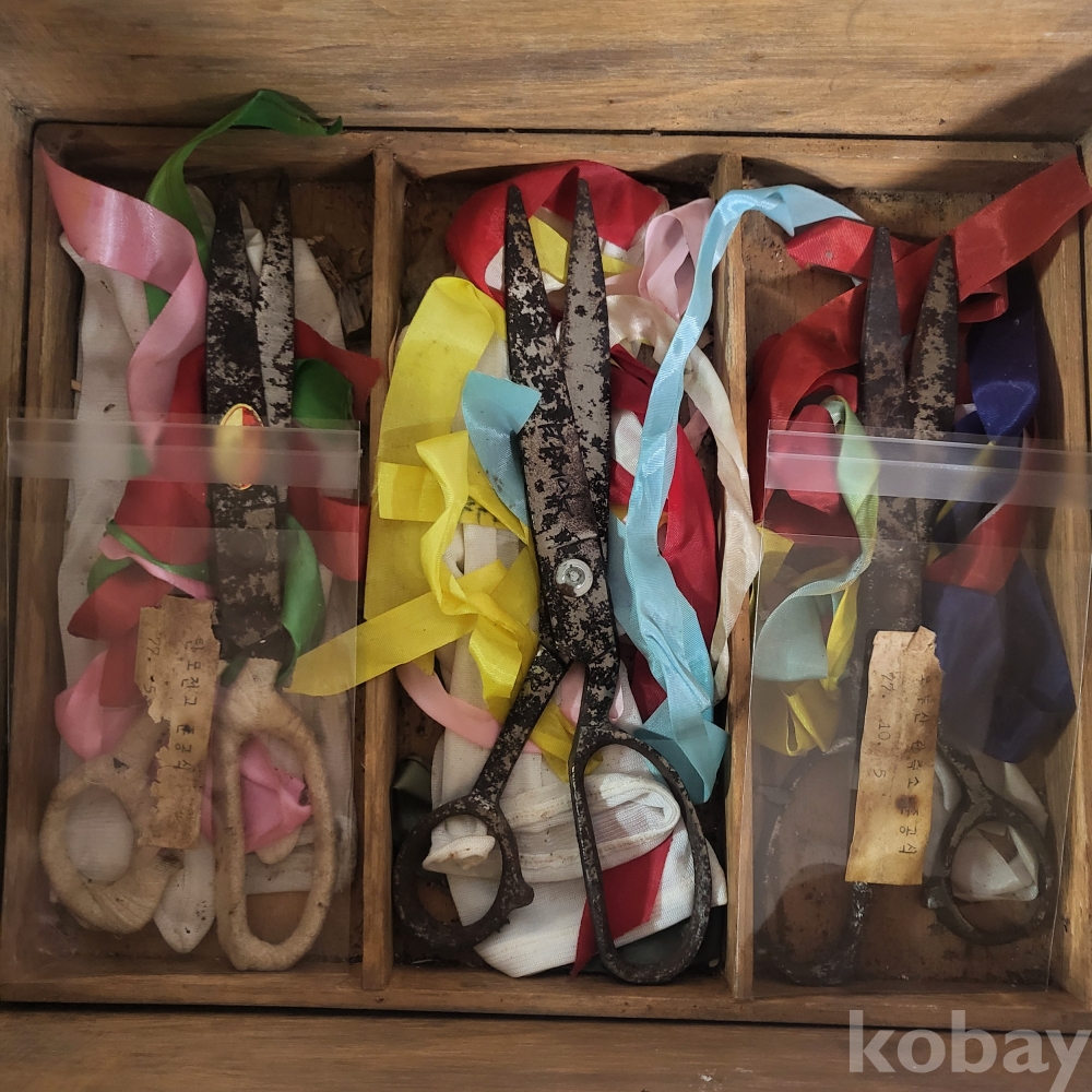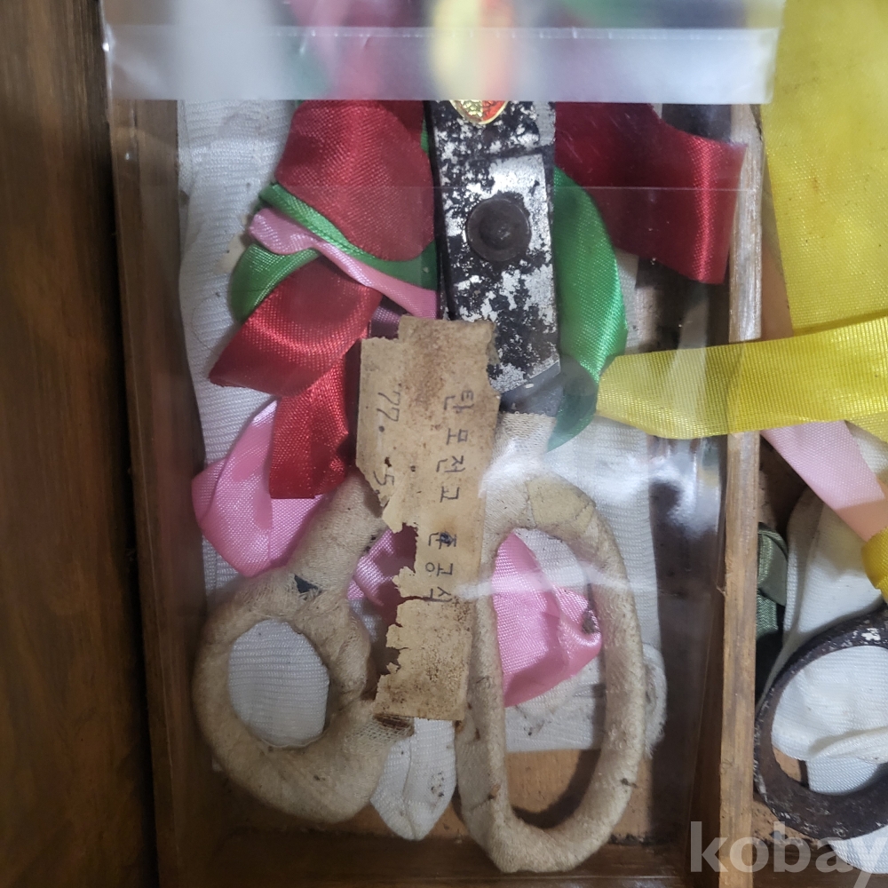 박스안에는 가위, 흰장갑, 오색테이프 등이 그대로 보관되어 있으며