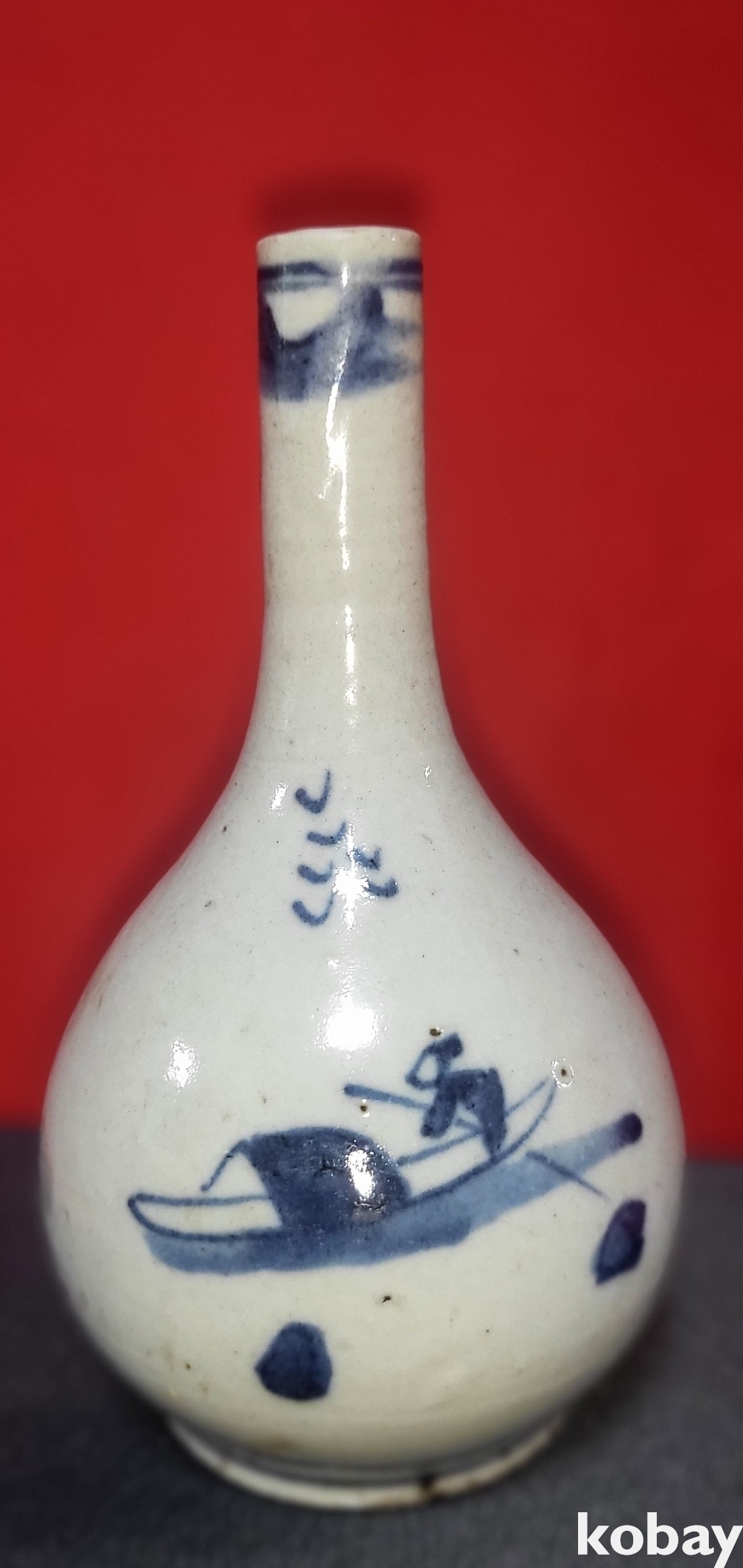 명말 청초 시대 청화백자 산수 인물문양 병입니다,