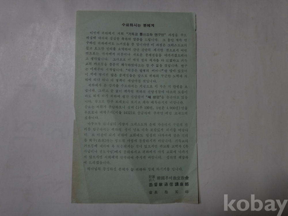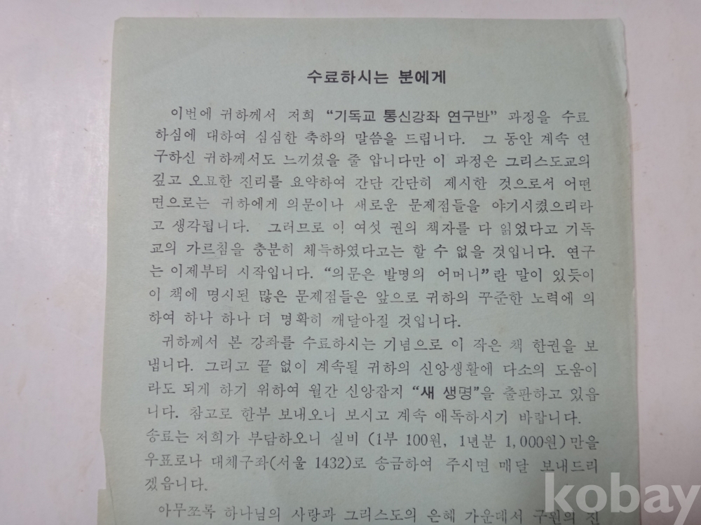 기독교 통신강좌 연구반 과정을 - 수료하시는 분에게 (한국루터교 선교회 기독교통신강좌반)