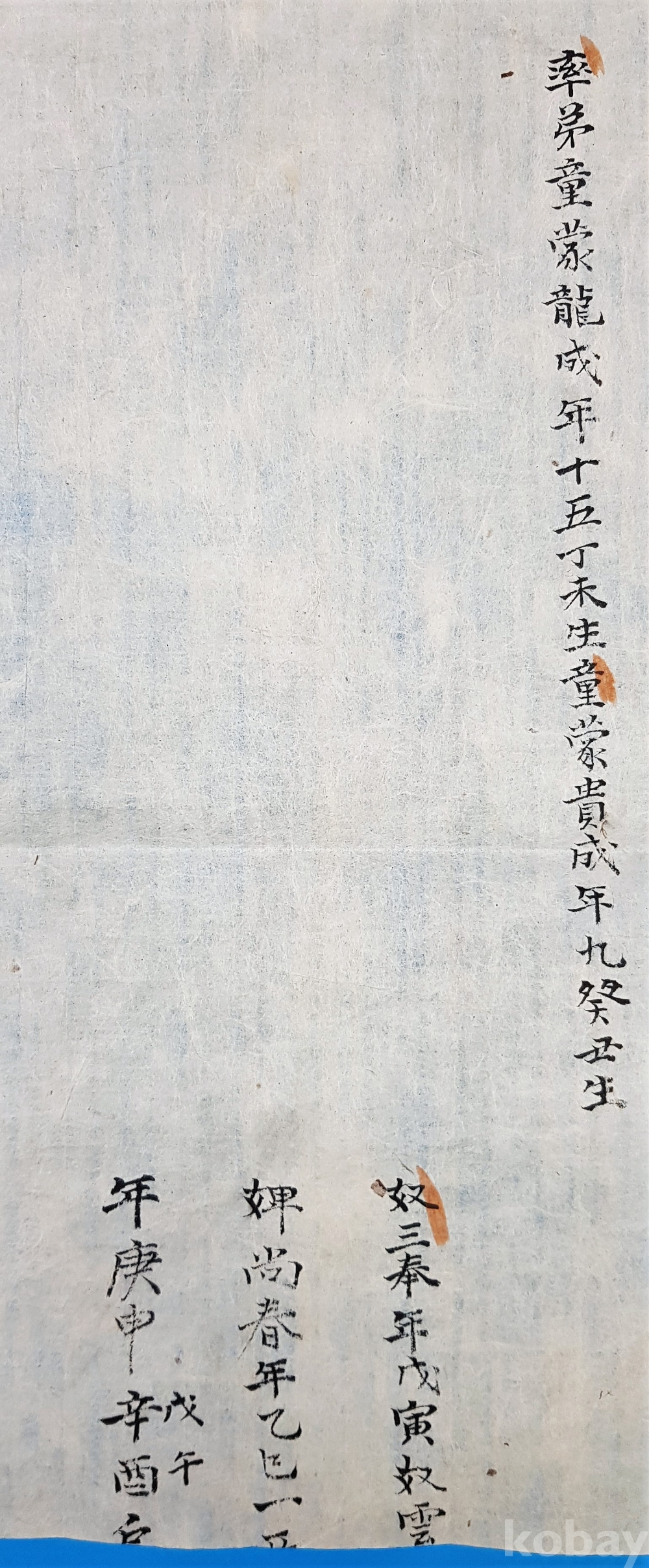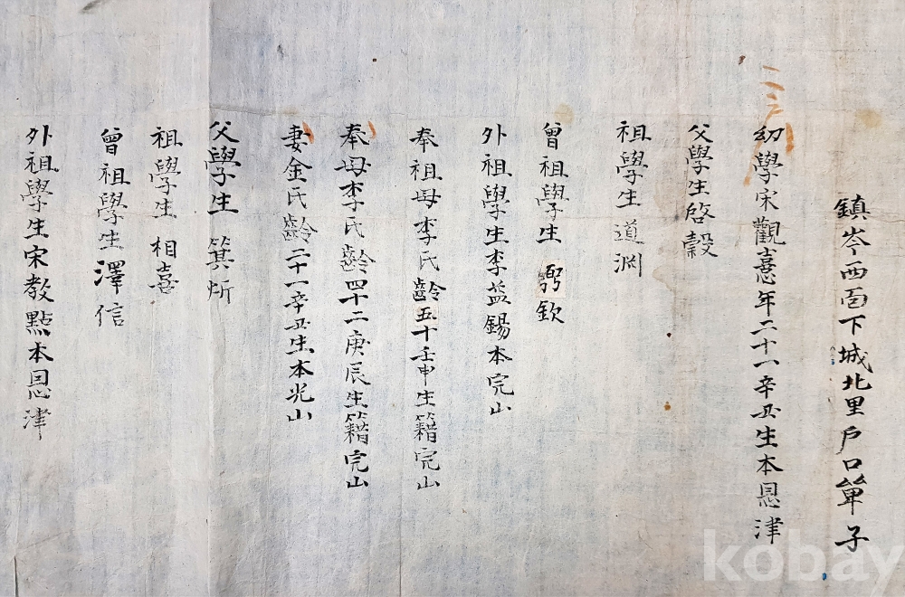 조선시대 진잠서면 하상복리(현 대전 유성구 성북동) 호구단자