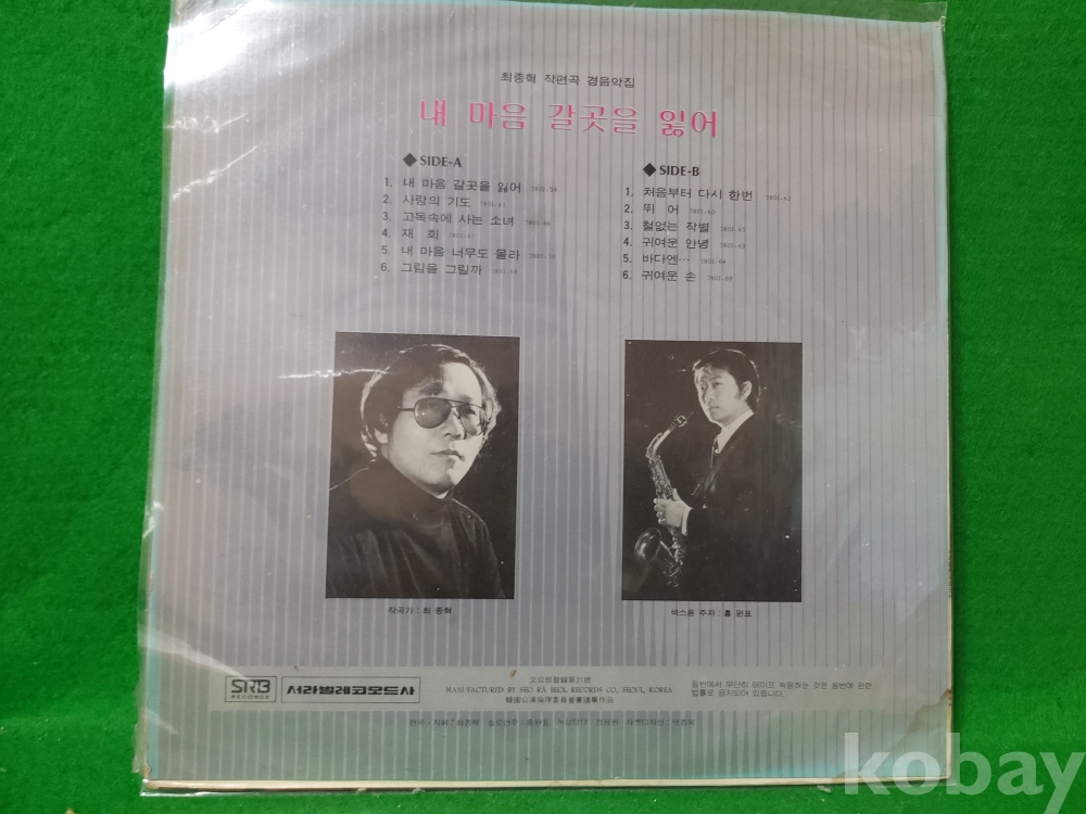 LP.레코드 = 가요 = 최종혁 작.편곡 경음악집 - 내마음 갈곳 잃어