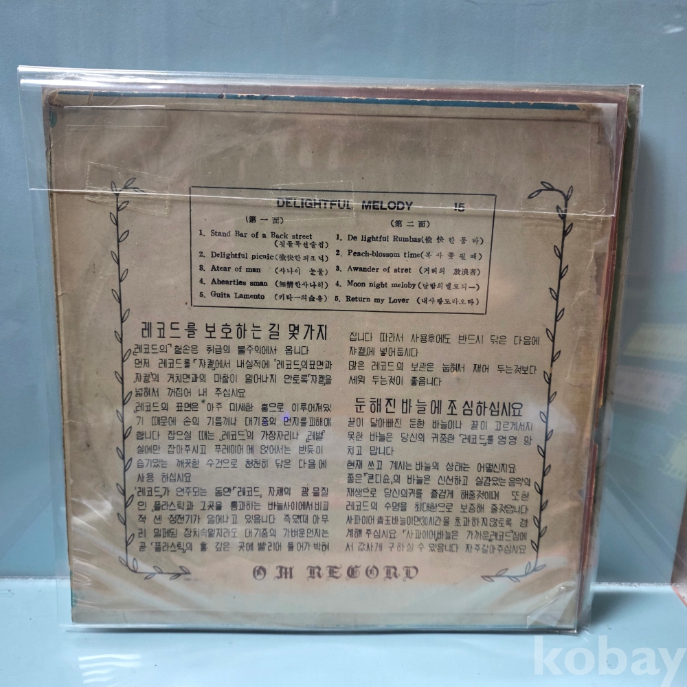 상품 설명 | Side A 1. 뒷골목 선술집 (Stand Bar of a Back Street) 2. 유쾌한 피크닉 (Delightful picnic) 3. 사나이 눈물 (A Tear of Man) 4. 무정한 사나이 (A Heartles Man) 5. 키타-의 슬픔 (Guita Lamento) Side B 1. 유쾌한 룸바 (Delightful Rumbas) 2. 복사꽃 필때 (Peach-blossom Time) 3. 거리의 방랑자 (A Wander of Street) 4. 달밤의 멜로듸 (Moon Night Melody) 5. 내사랑 도라오라 (Return My Lover) |