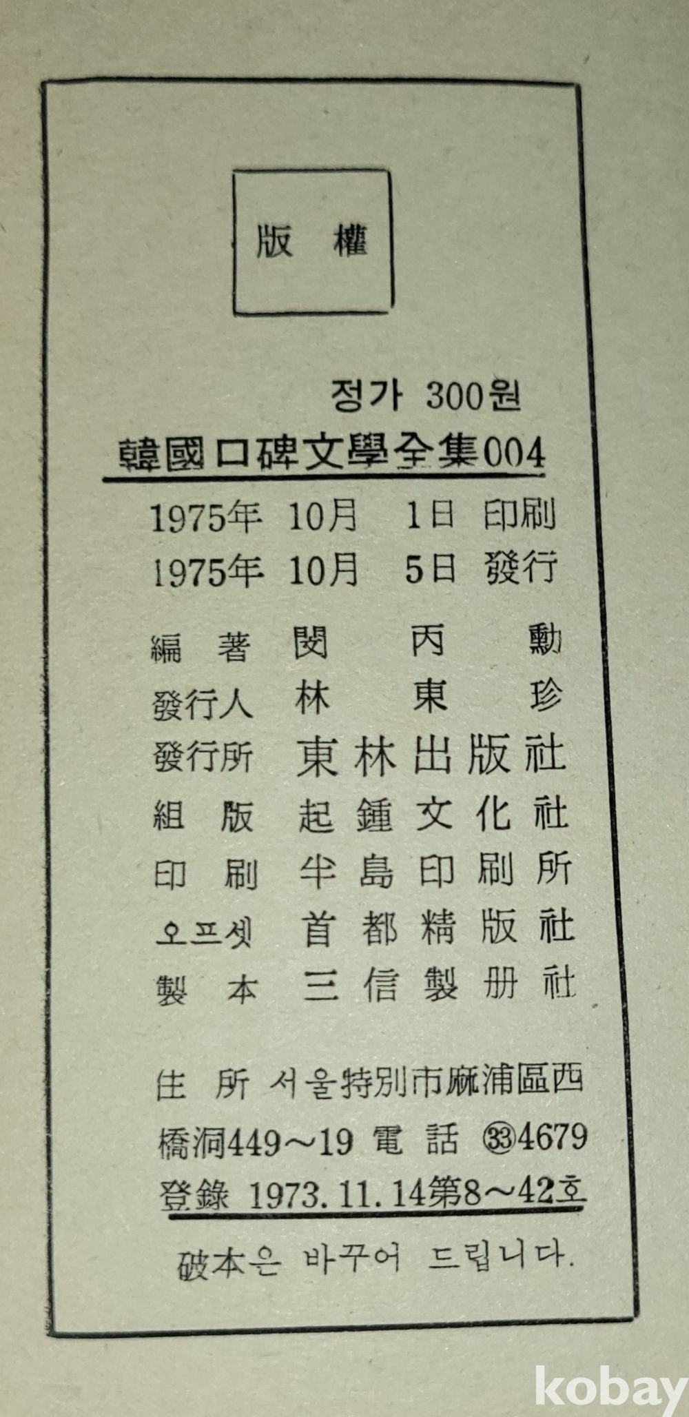 50년 전에 발행된 책으로 노후감과 탈색이 보임니다,