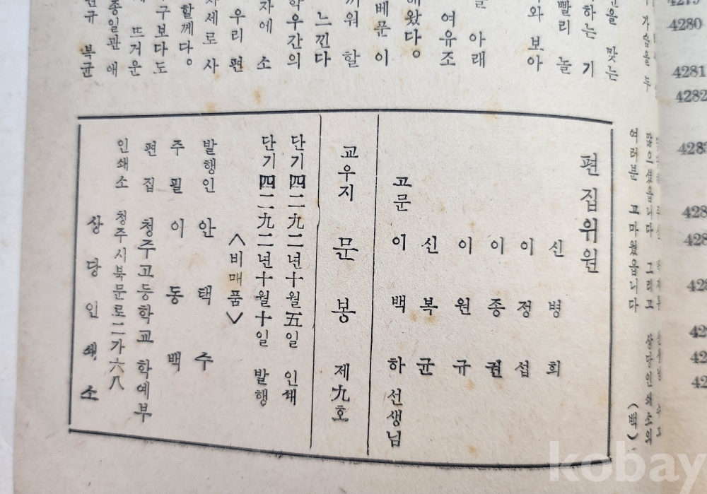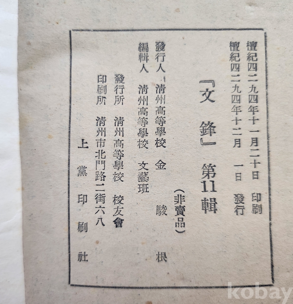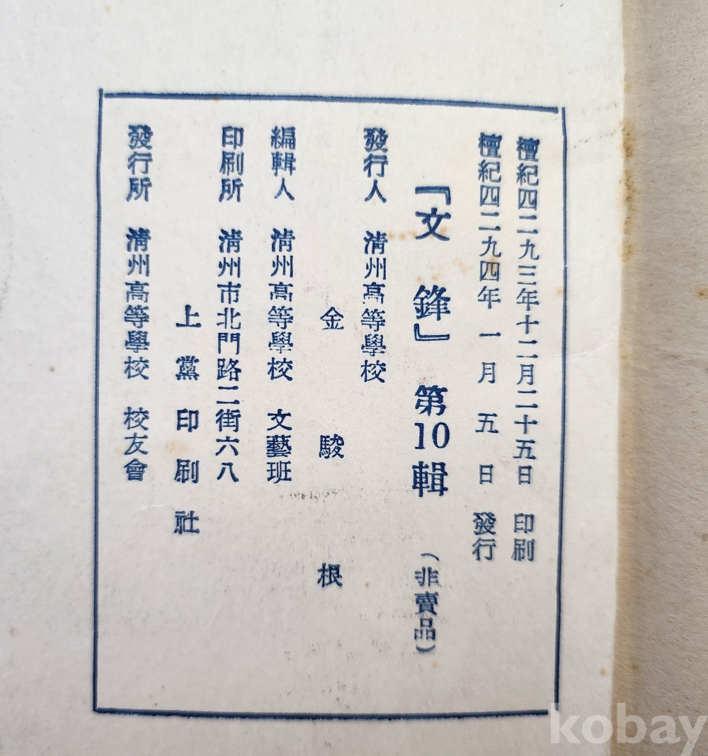 청주고등학교 교우회 문봉 3권 4292년 1959년 9호 4294년 1961년10호 11호 3권 입니다 양태 양호합니다 10호 209페이지