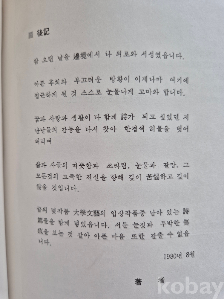 1980년 발간한 첫 시집 『불을 스쳐가는 작은 바람』