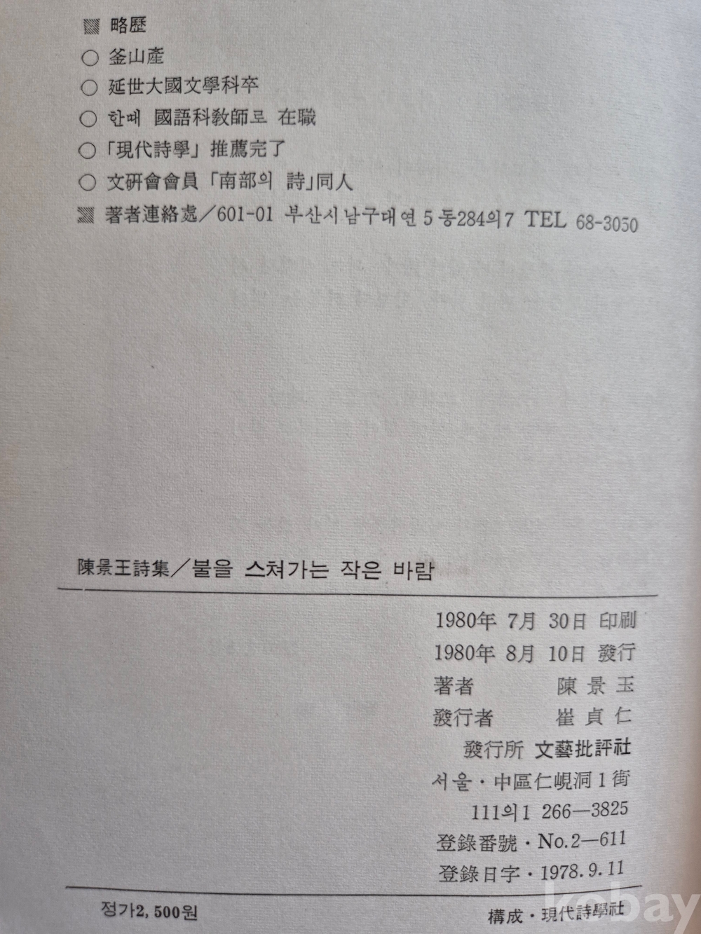 文藝批評社에서 발행. 151쪽. 15.1X20.9X1.3cm