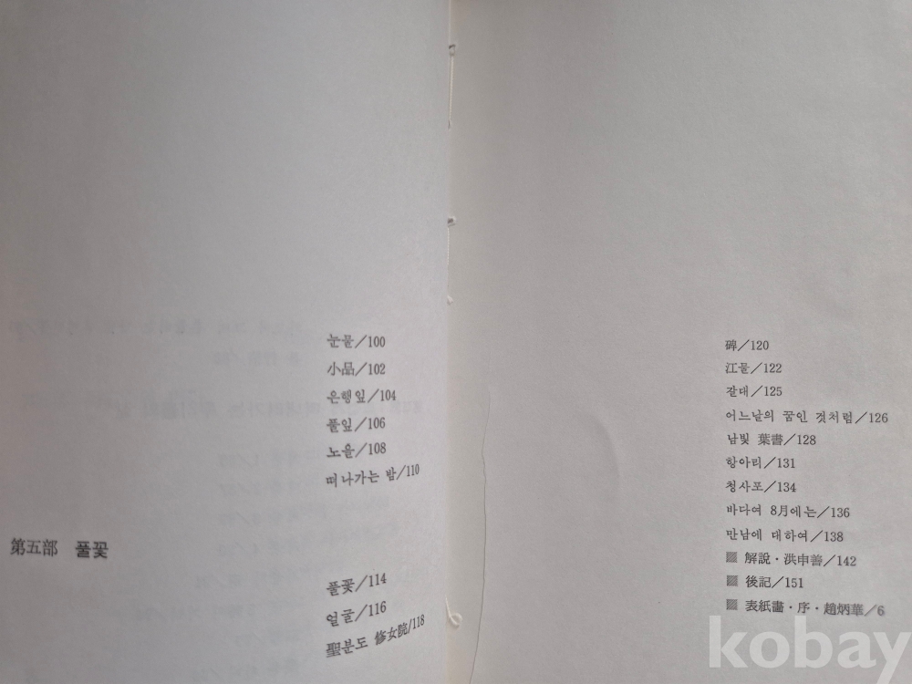 5부 38편의 작품과 저자 後記로 구성. 비닐 재킷 온존.
