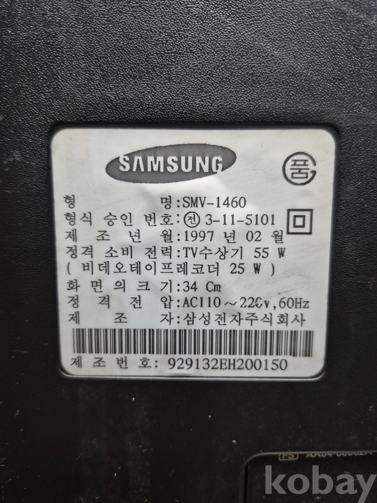 1997년 삼성전자 비디오 비젼 정상작동 전원 220볼트 모델 SMV-1460 36*36*38