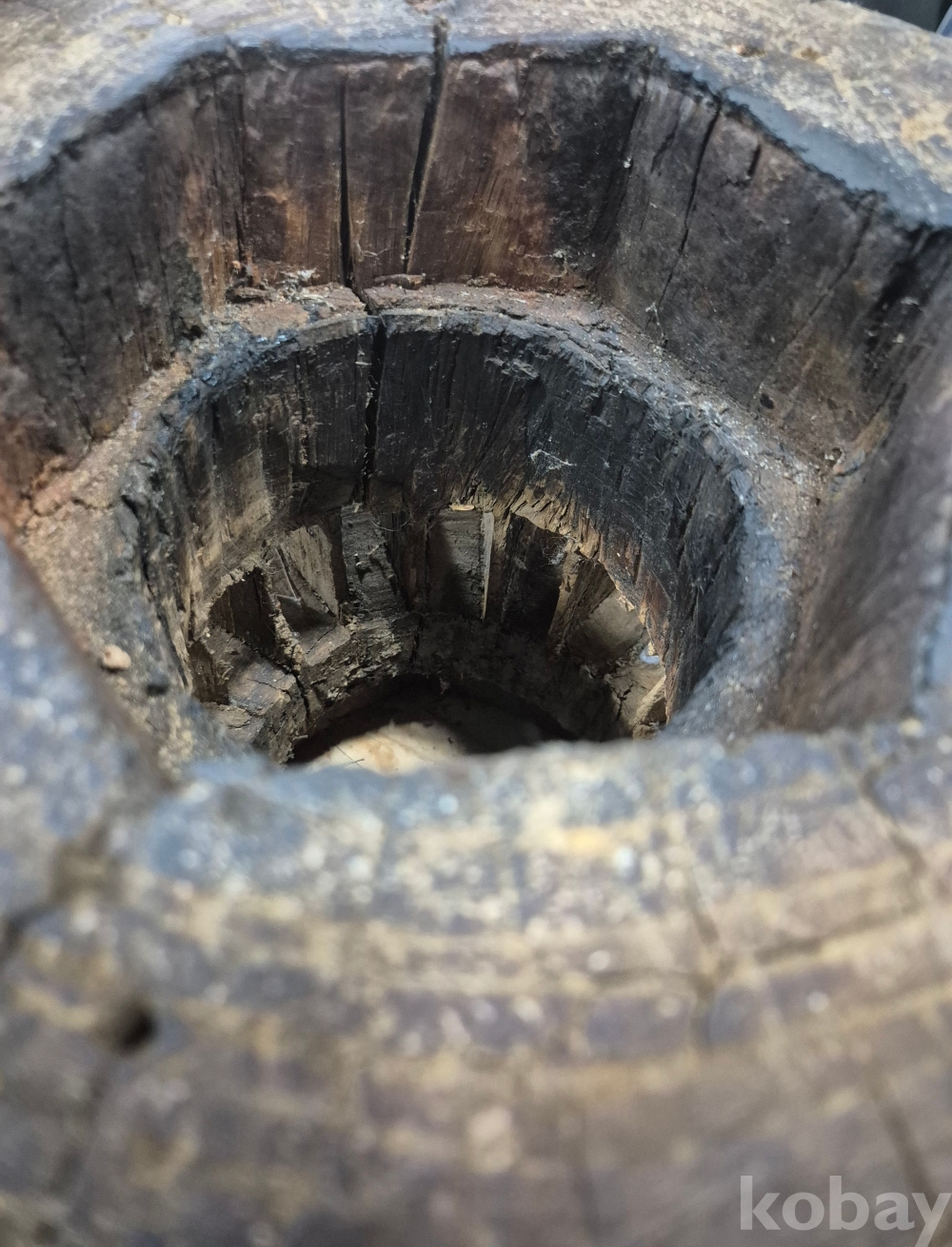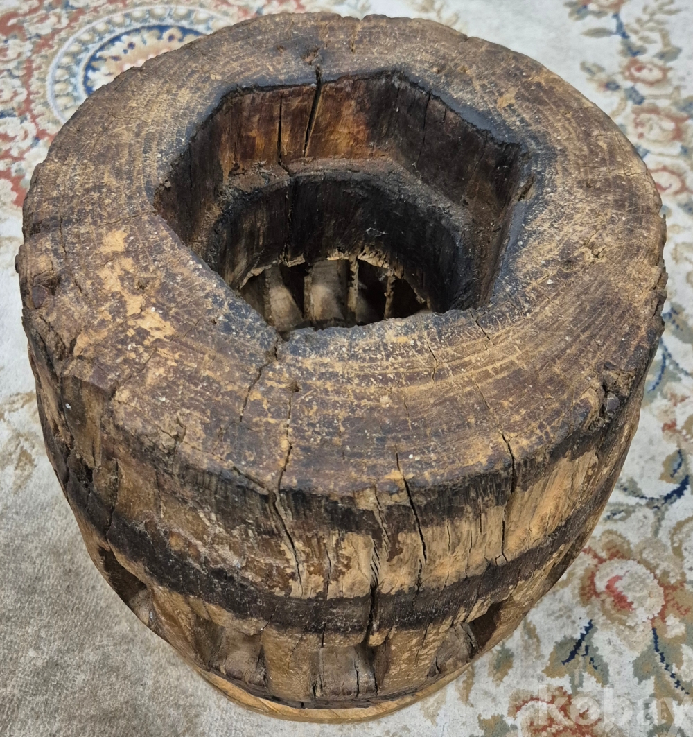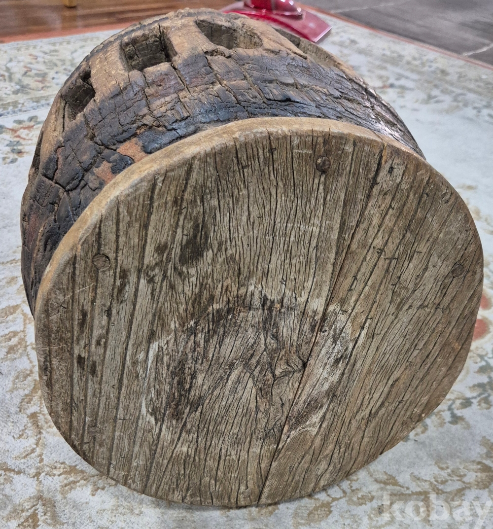 오래된 실내용 동 화로를 틀 안에 넣고 사용하였던 관솔나무류'로 추정되는 단단하고 묵직한 민속품'입니다