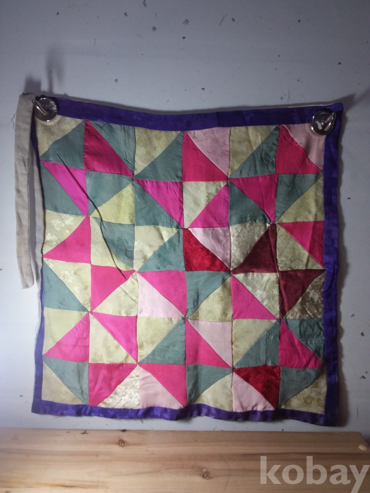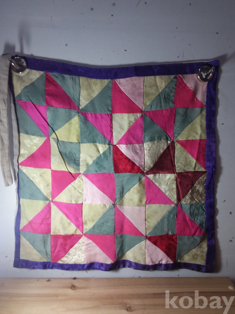 비단조각을 한땀한땀 바늘로 엮어 만든 오리보입니다