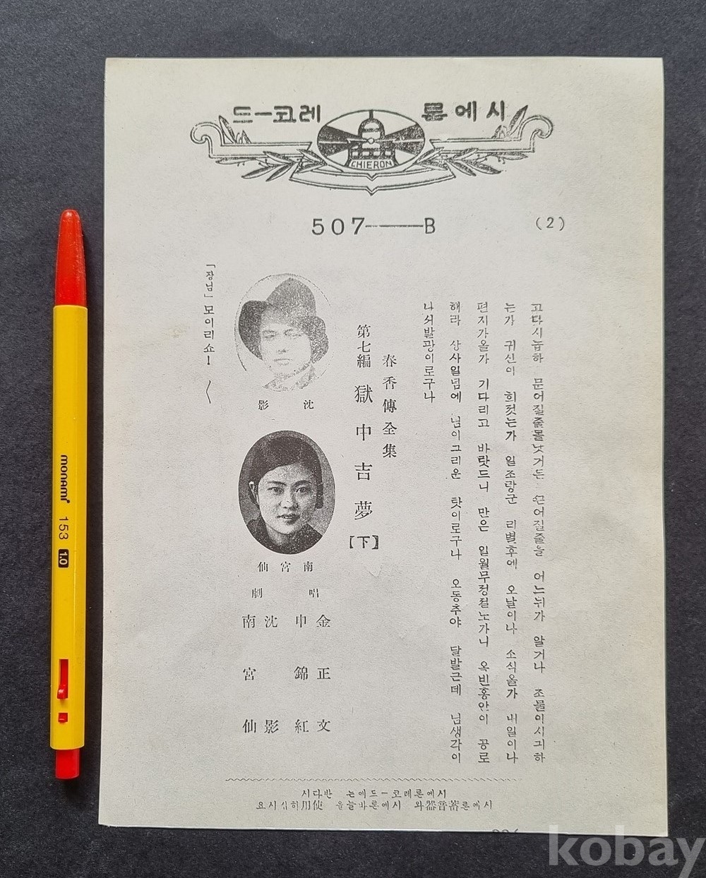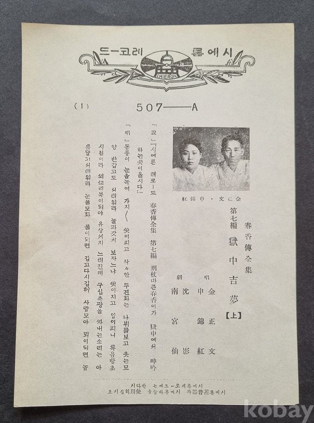 ro-28 / sp음반 (돌판) 가사지 (희귀) (원본복제품)