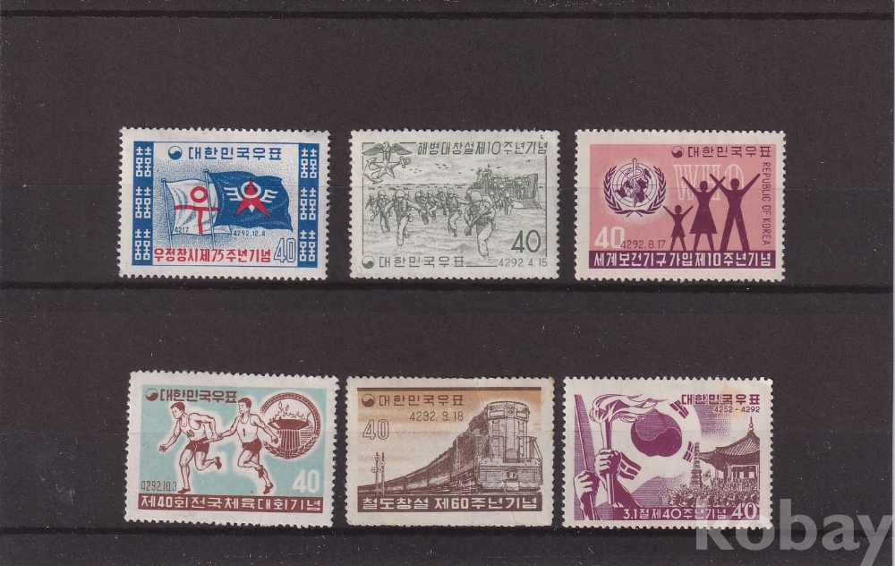- 미사용 4292(1959)년 기념우표 6종 모음 / 우정창시, 해병대창설 등