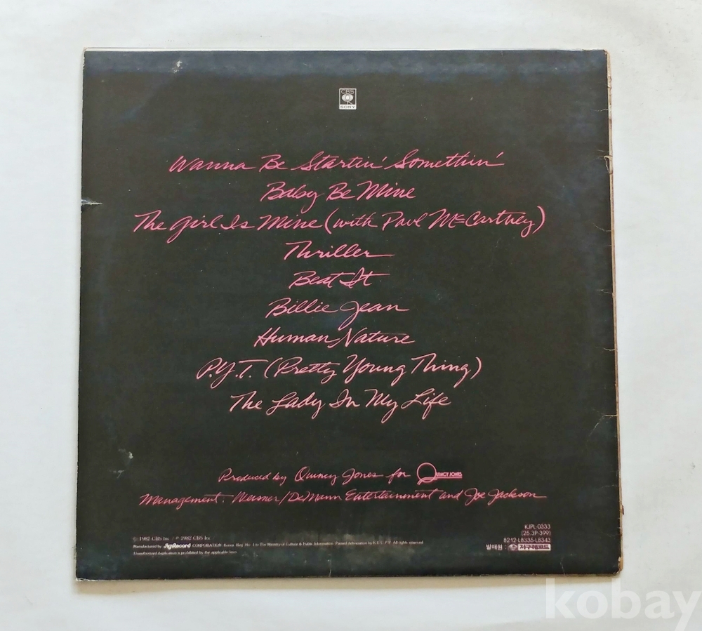EX : 약간의 마모, 모서리 찢김 존재 음반상태