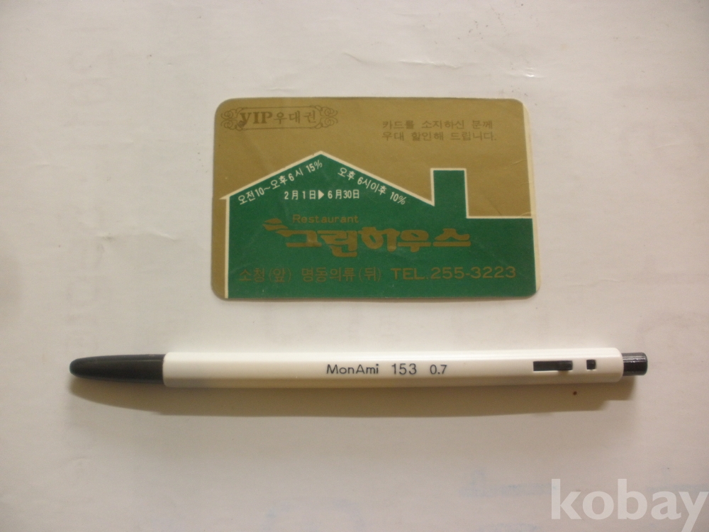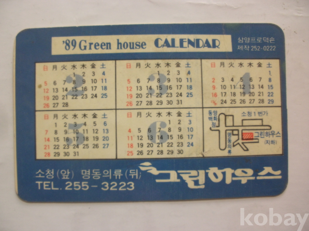 그린 하우스 - VIP우대권 (소청앞 명동의류 뒤) 뒷면, 1989 그린하우스 카렌다
