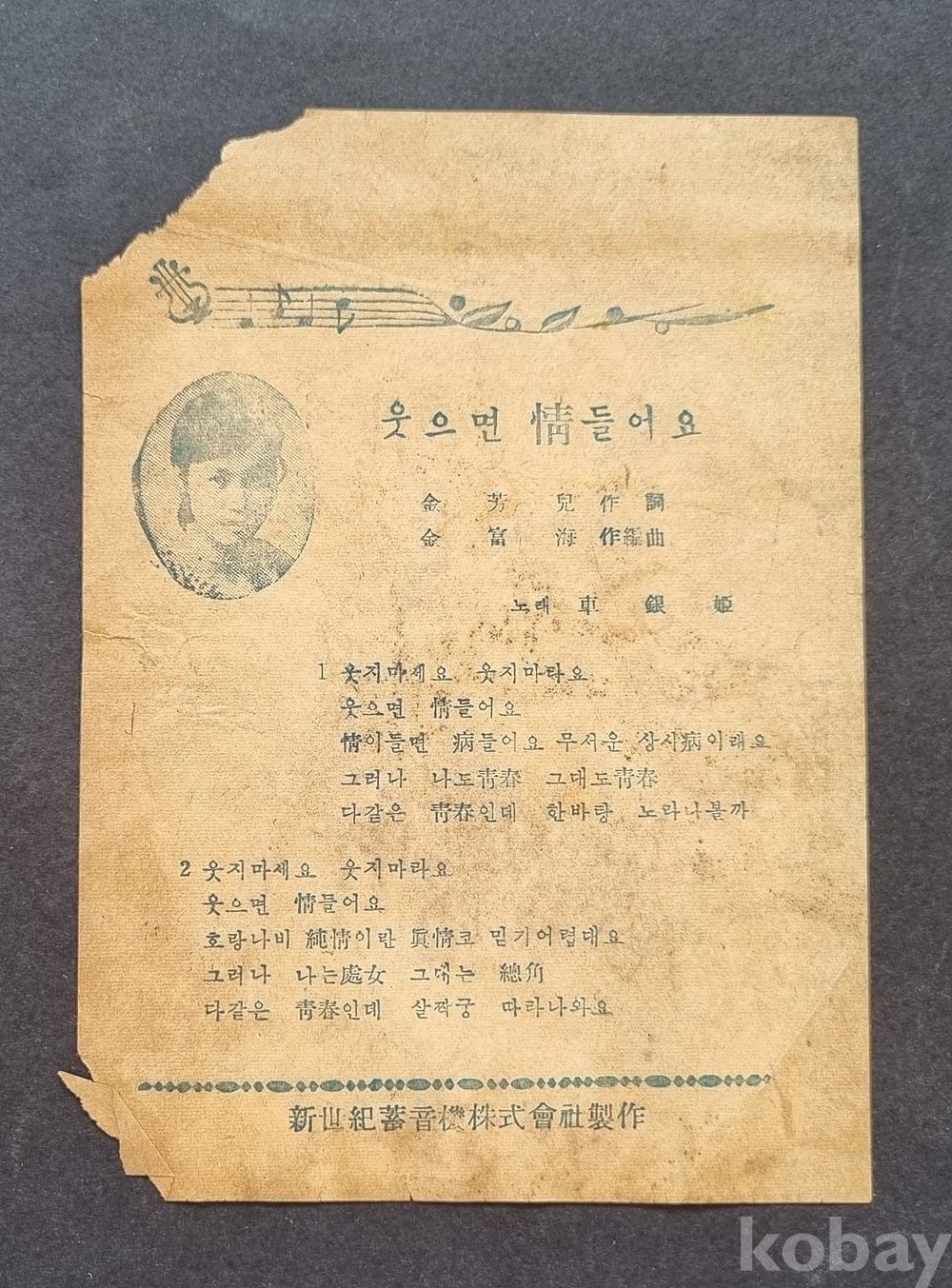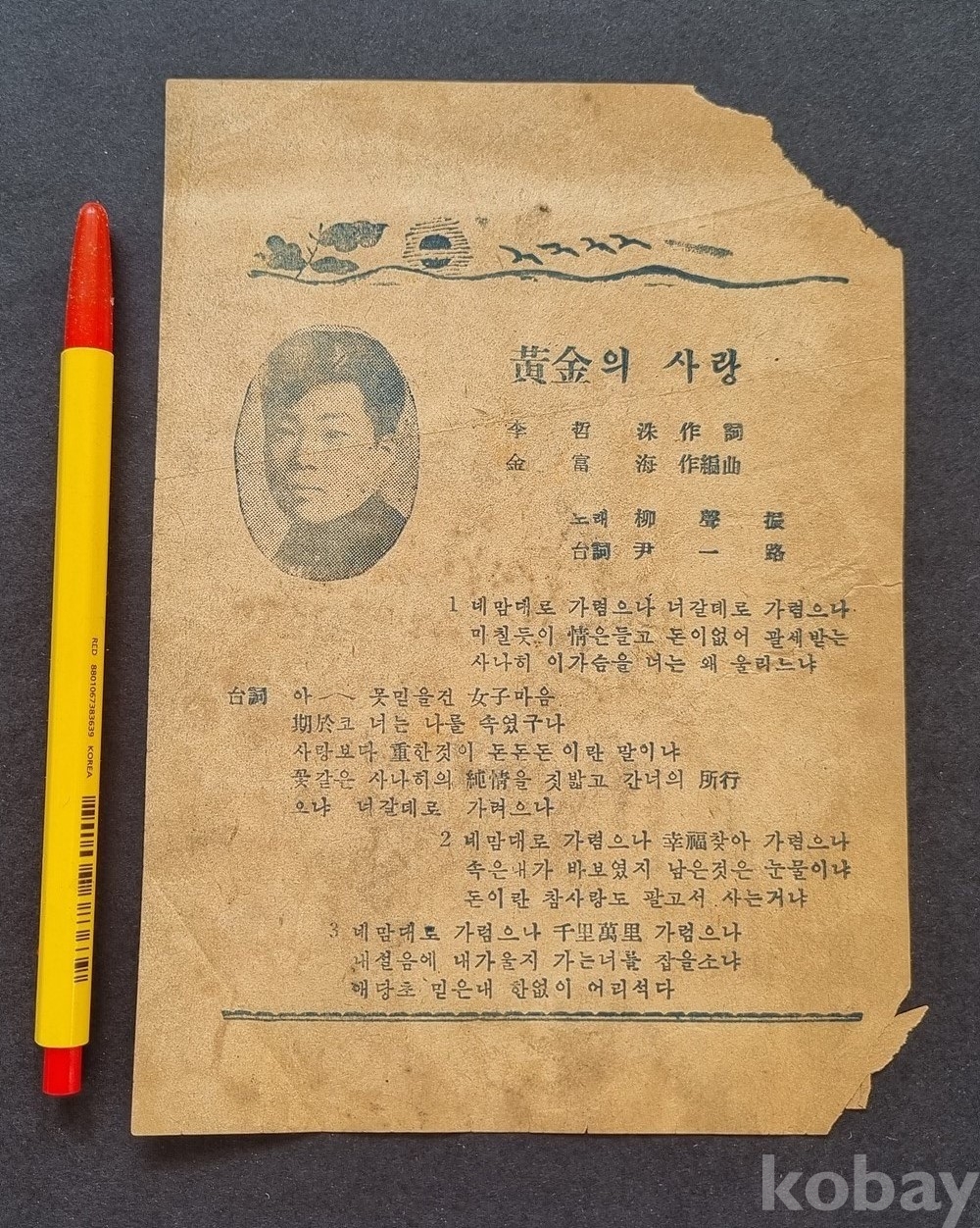 ro-42 / 해방전 ~일제강점기 오리지널 sp음반 (돌판) 가사지 (희귀 돌판 가사지) "웃으면 정들어요, 황금의 사랑"