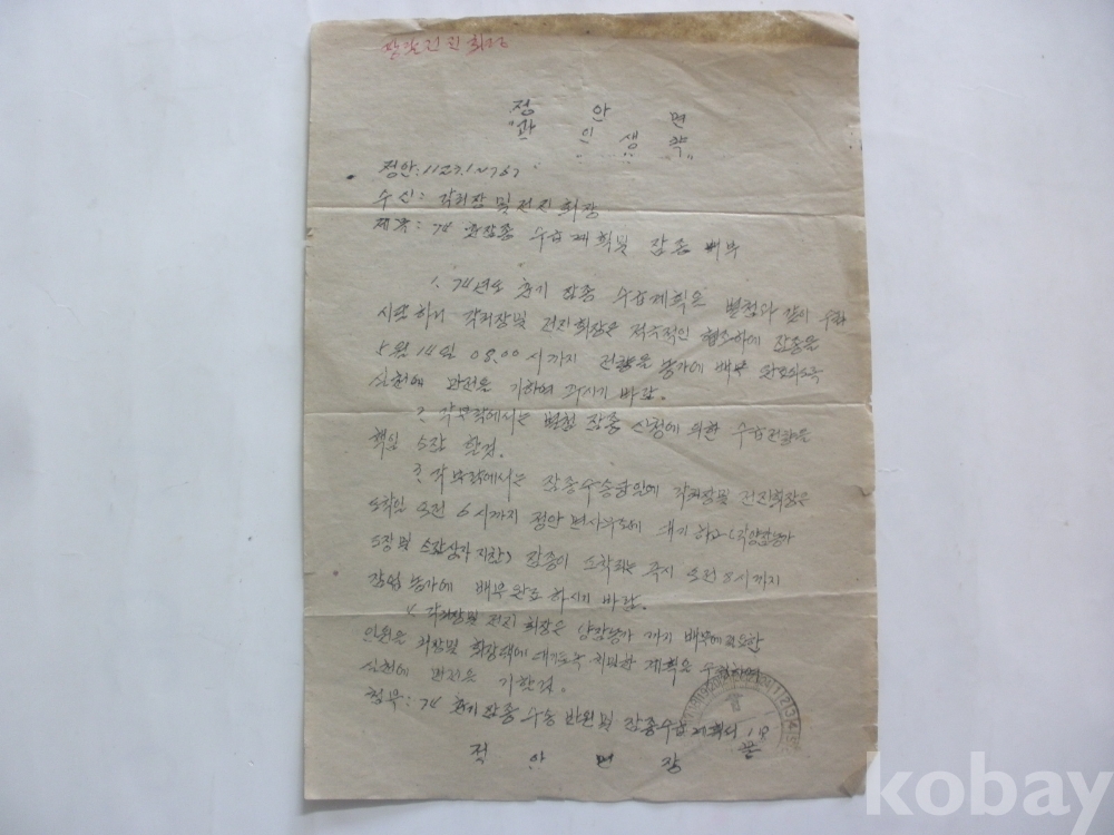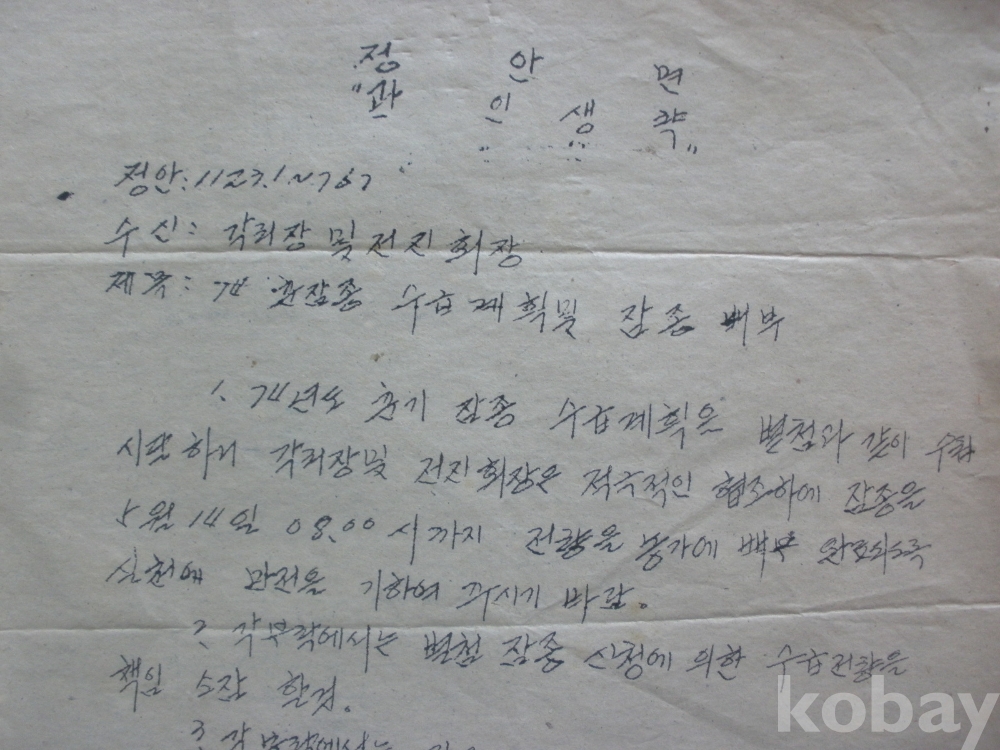 춘잠종 수급계획 및 잠종 배부 (1974년, 장안면)
