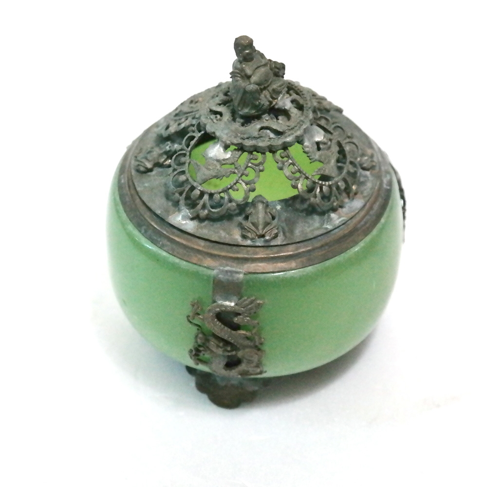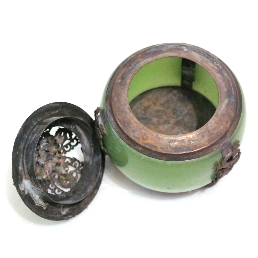 몸통이 백동으로 만들어졌으며 몸통부분은 옥이 들어간 앤틱주전자 소품 입니다.