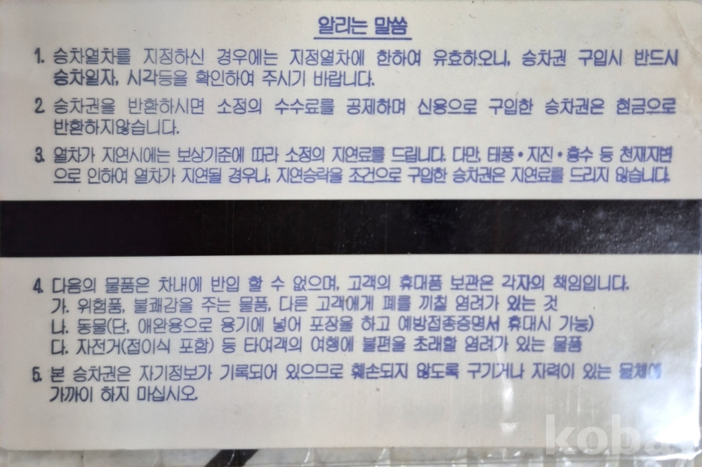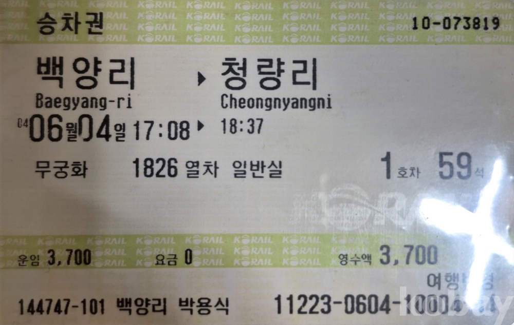 2004. 6. 4. 백양리역 발매 백양리-청량리 승차권입니다.