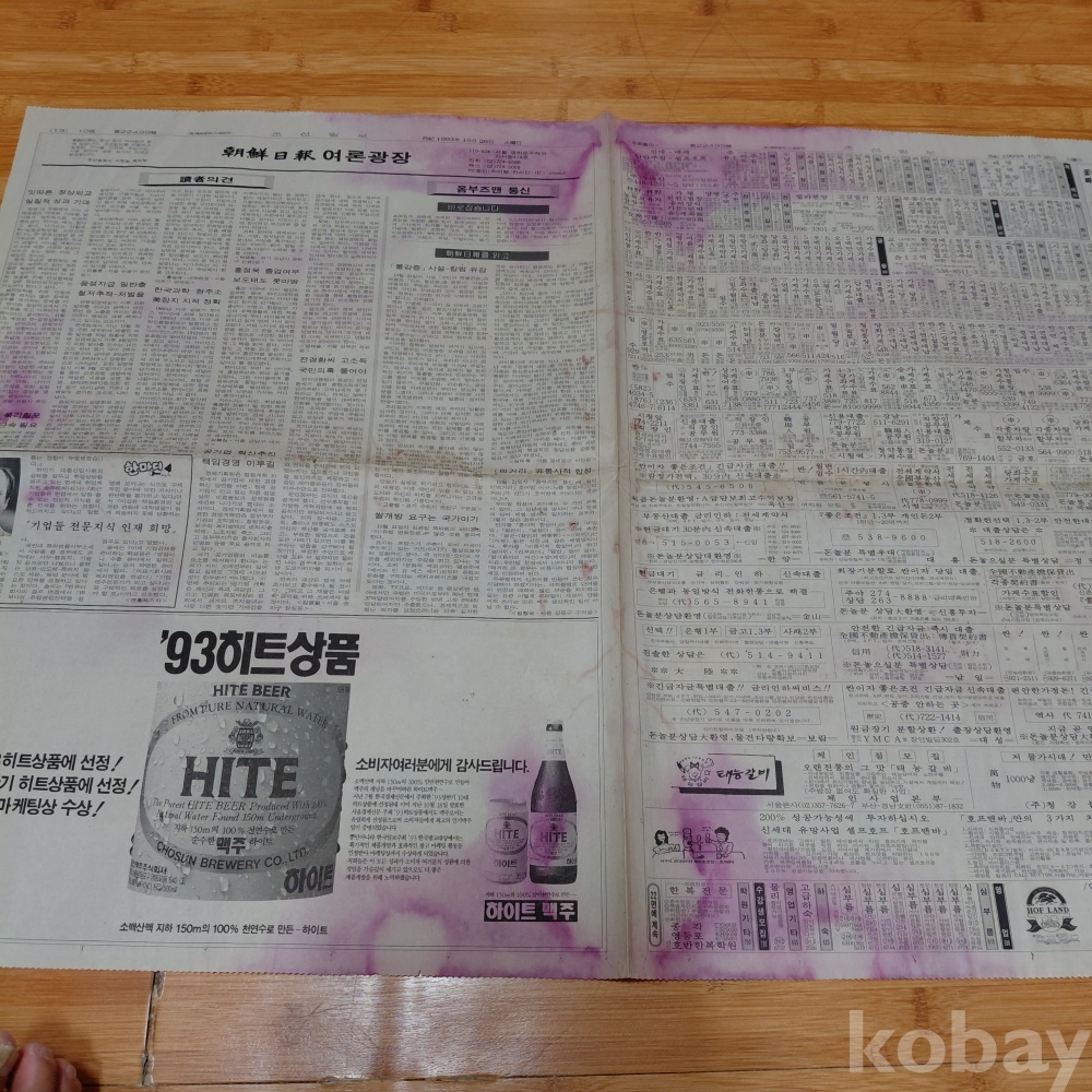 93히트상품 하이트맥주 광고 조선일보 93년10월26일 올려드립니다