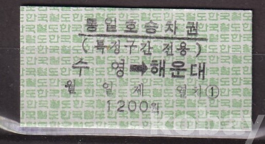 - 미사용 통일호 승차권(특정구간전용) " 수영 ▶ 해운대 " 1200원